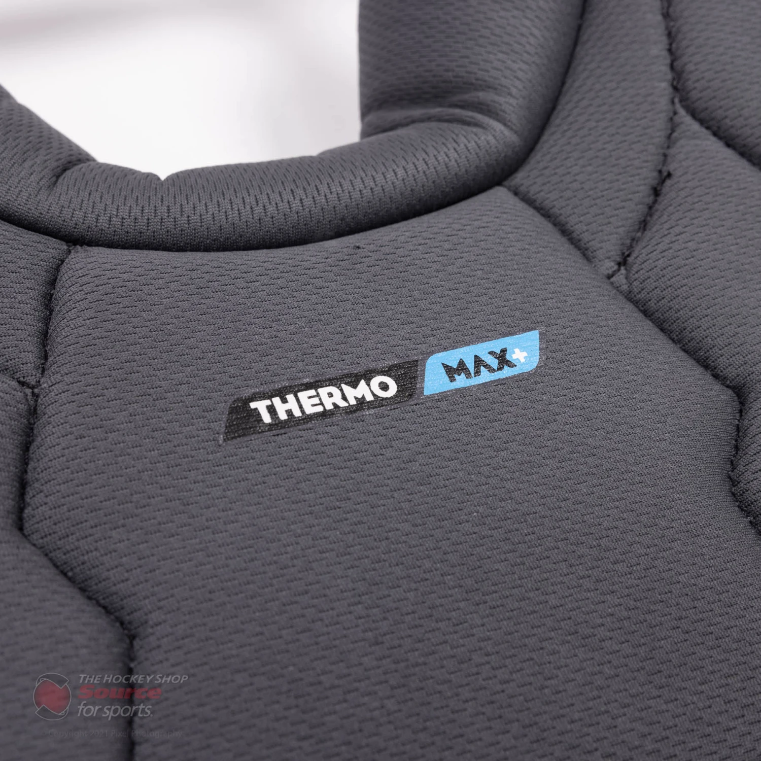 The Elite clavicle guard is made of a durable abrasion resistant nylon on the top while the back side uses Bauer’s ThermoMax to help keep you cool throughout the icetime. One thing worth noting is the use of a new, much more durable velcro than previously seen on Bauer neck guards.