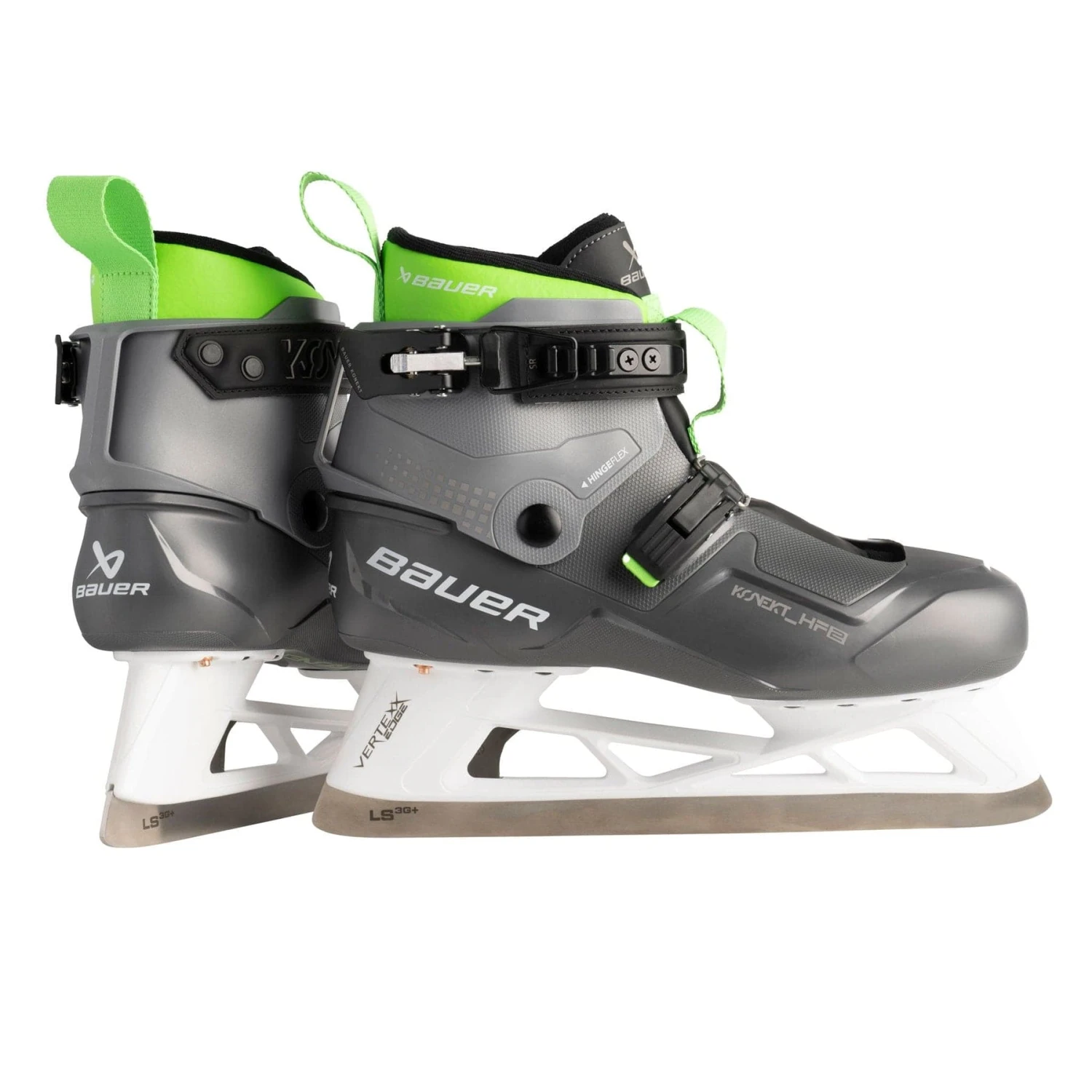 Based largely off of last season’s Konekt skate, Bauer has released a new performance level skate: the Konekt HF2 Goalie Skate. This skate features an Anaform customizable thermoform shell, a HingeFlex cuff, a Thermofoam liner, and Ultralon padding around the ankle to bring together a skate that has a close connection to a ski boot.