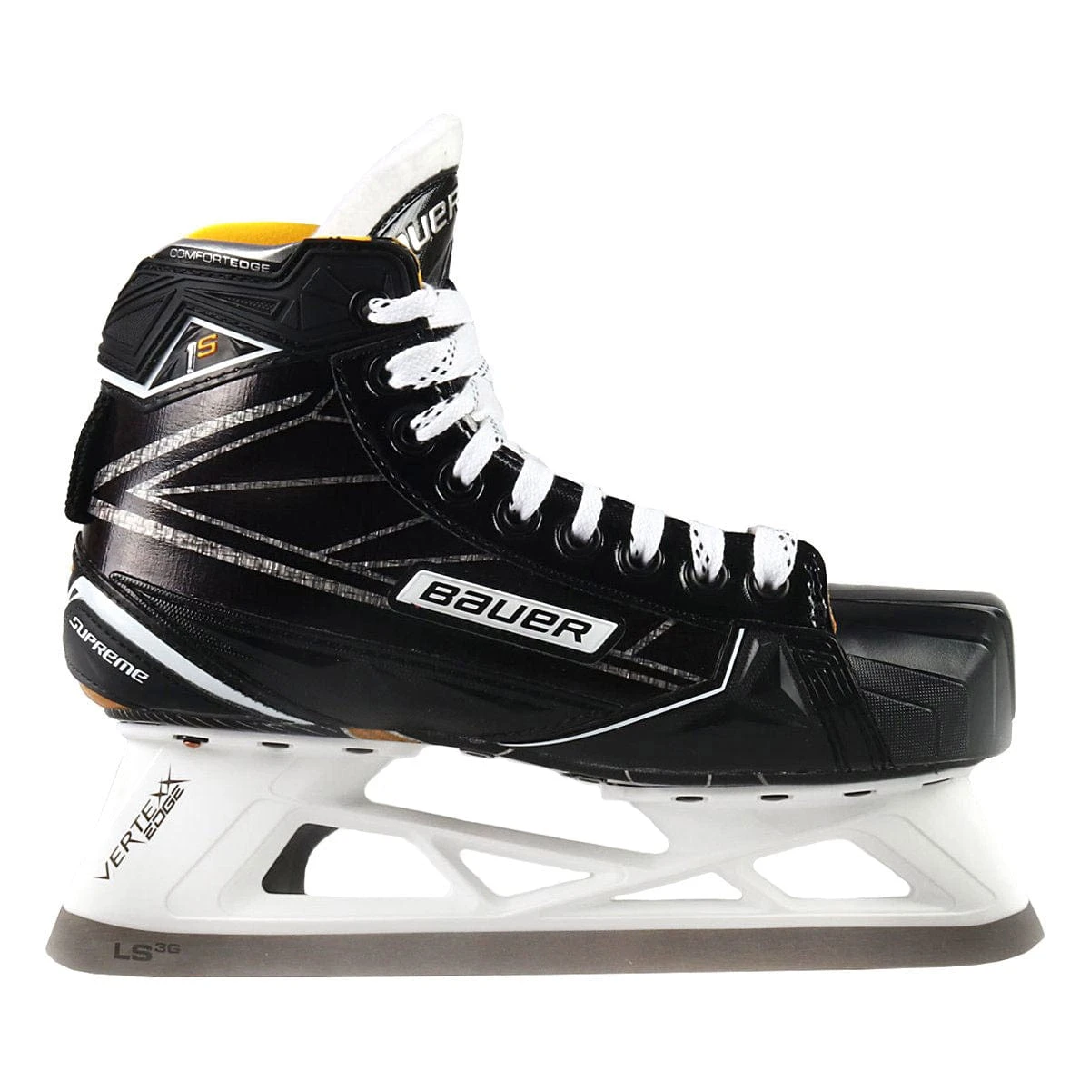 The Bauer Supreme 1S Junior Goalie Skates feature an anatomical fit system, a stiff, pro-grade quarter package, and a nylon reinforced outsole. These features provide a comfortable fit, enhanced durability and stability, and greater protection against impacts, so you can focus on making the save.