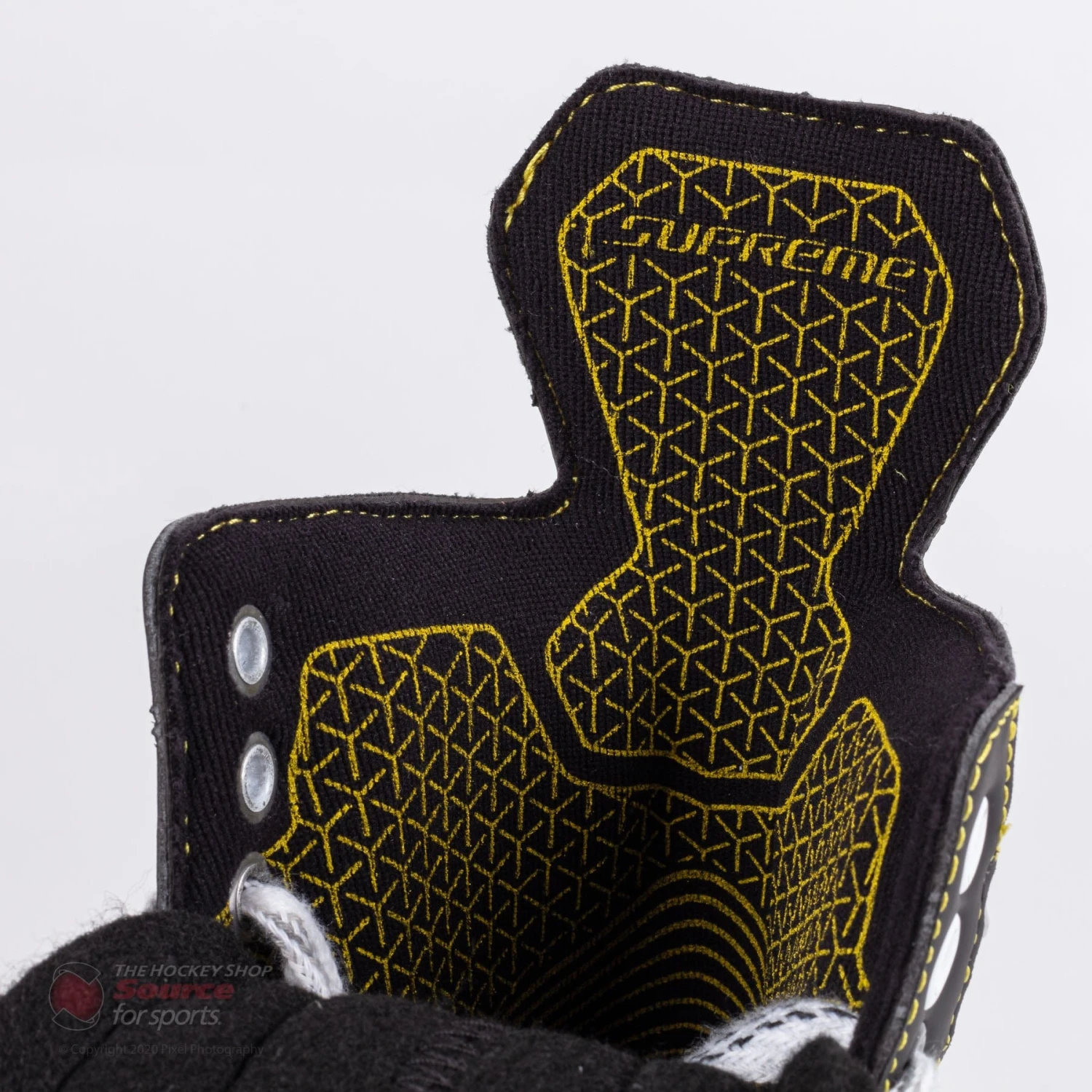 The tongue found on the Elite skate is the same one used on the Supreme S37. The tongue includes a 40 oz. felt base with Mesh Metatarsal Guard on the face to provide protection and comfort against lace bite while also giving the tongue a little more pop during your stride.