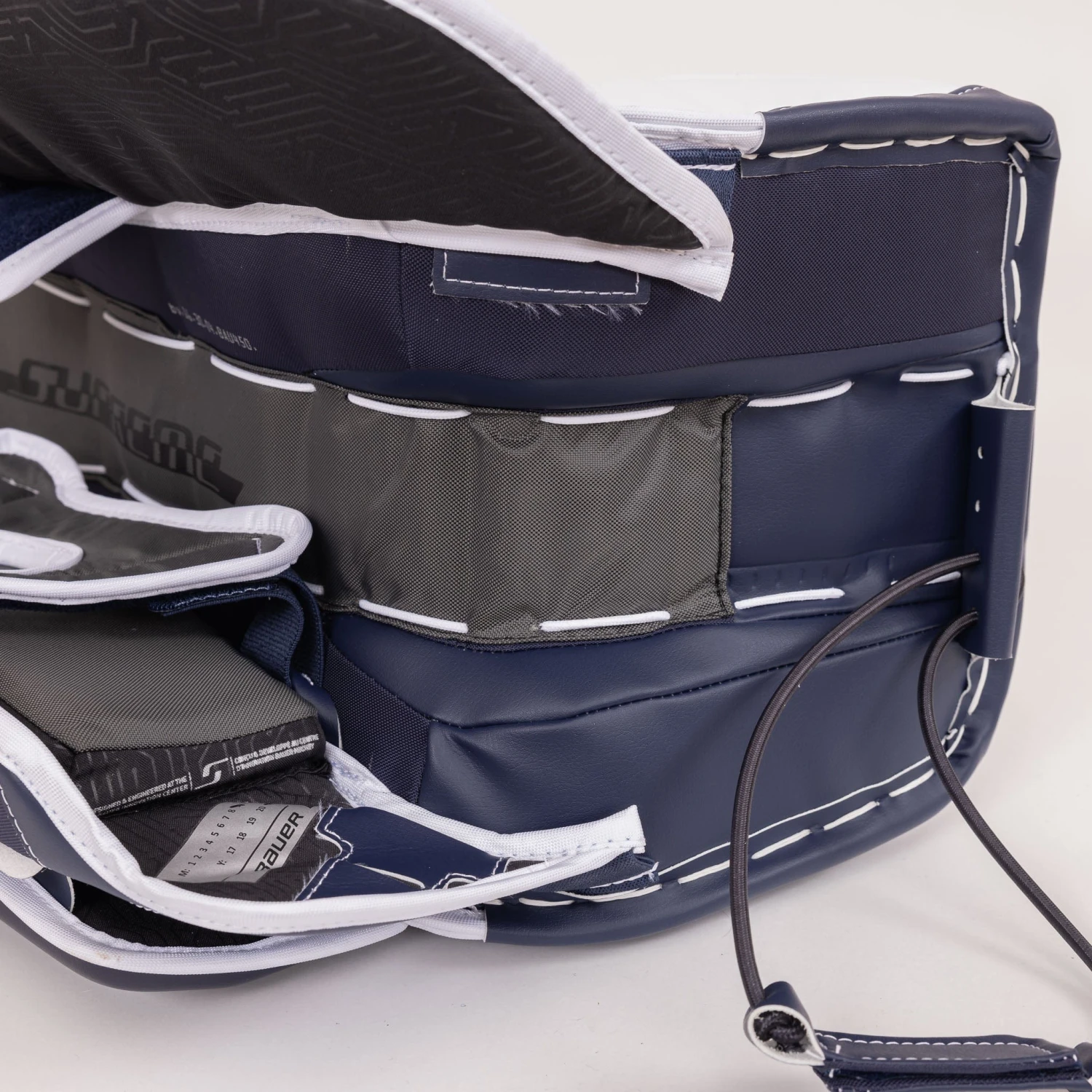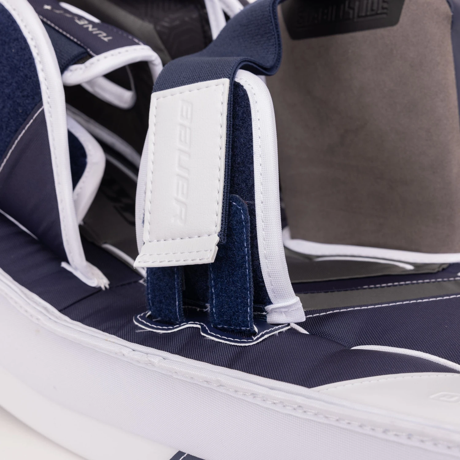 Bauer has tweaked their leg channel and strapping for this new Supreme pad. Tune-Fit+ is the result of multiple generations of refinement of the Tune-Fit system. This iteration features a V-shaped strap that is a fixed size but is adjustable allowing for that tighter or looser fit. This design better wraps and secures the calf than the previous elastic Y strap that doesn’t give the same level of consistency. The calf wrap itself has been extended offering better coverage while remaining lightweight and malleable through the use of Bauer’s AeroLite foam.