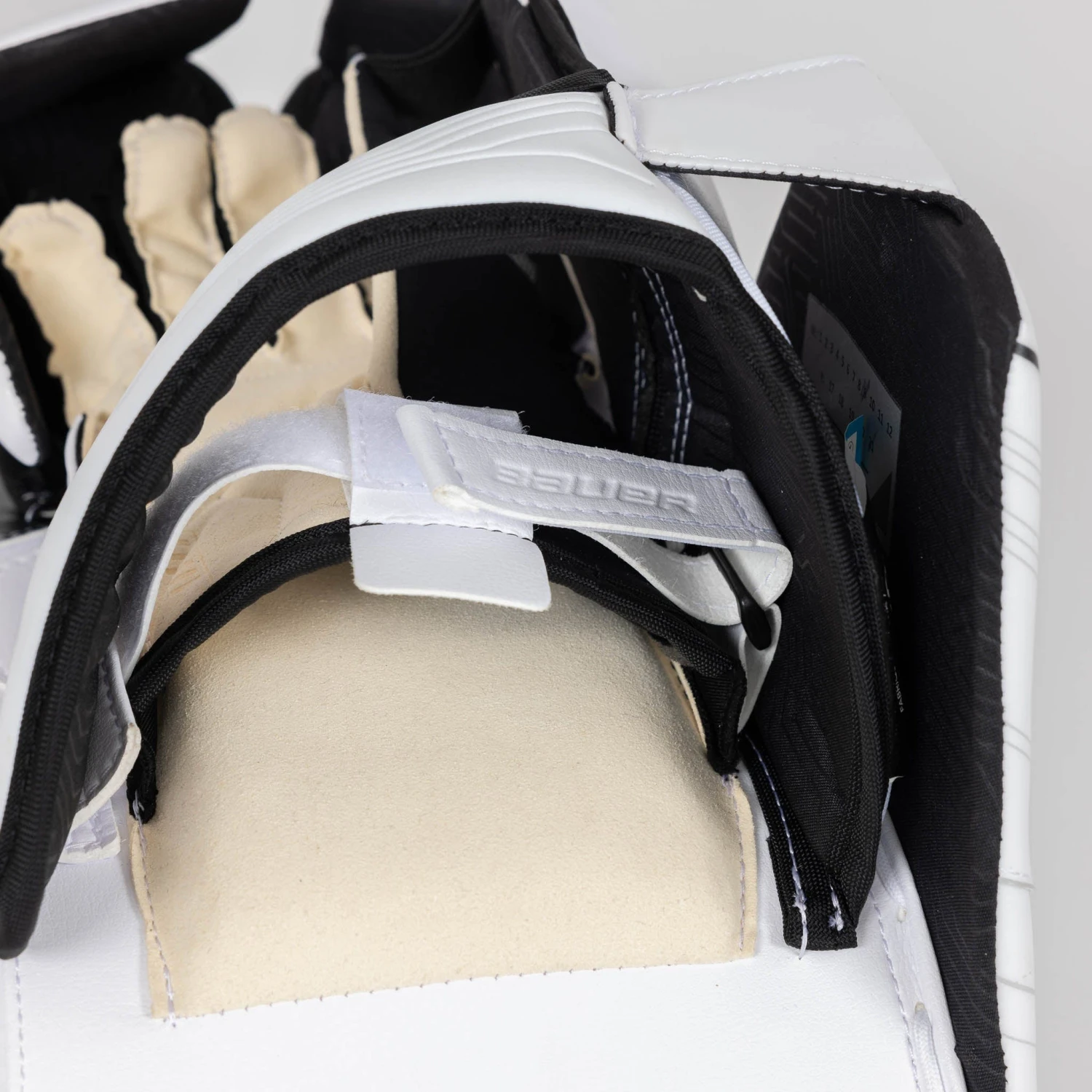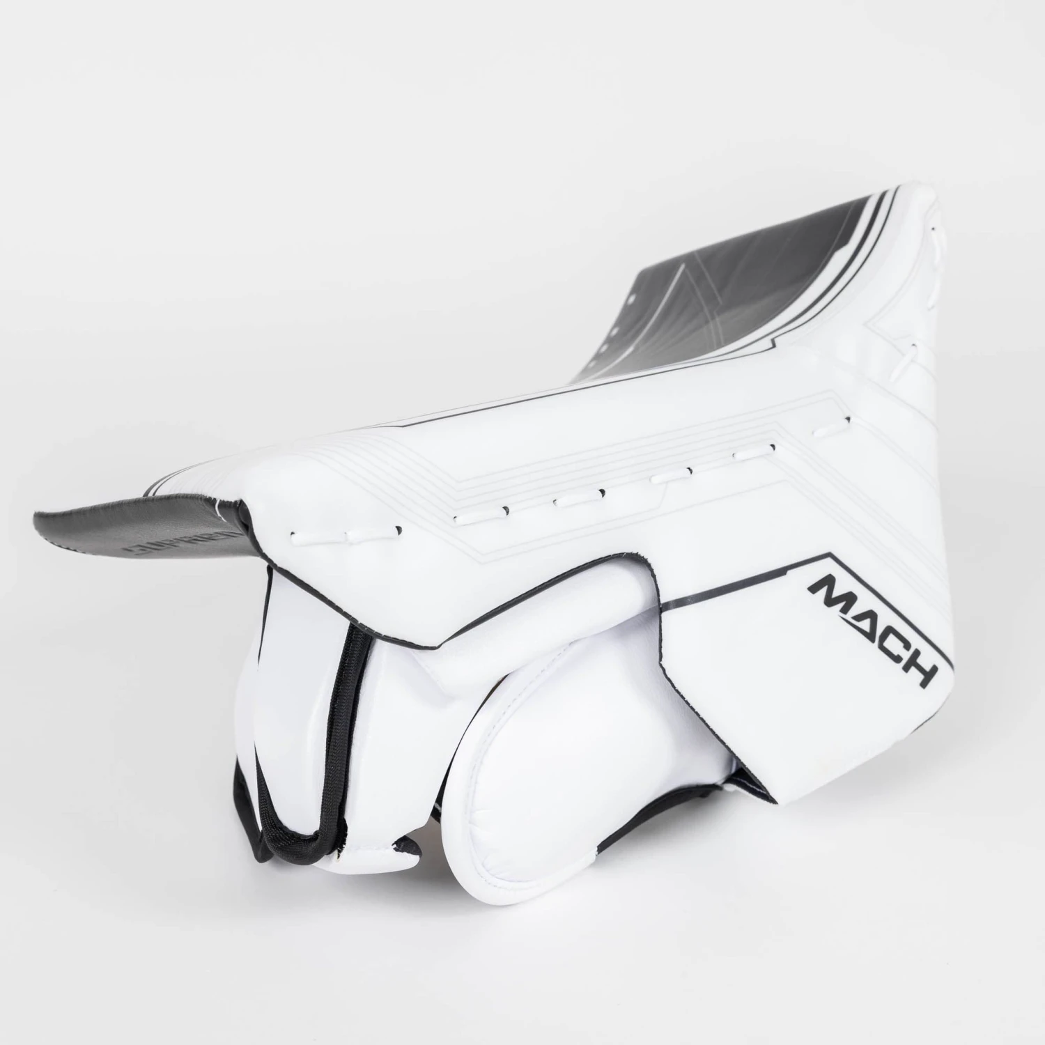 The highest-end Supreme goalie blocker now uses a Connekt+ palm, similar to its Vapor Hyperlite counterpart and some top-of-the-line gloves on the player side. Connekt+ is designed to optimize the relationship between your hand and the stick, making maneuvers and puck handling just that much more efficient.