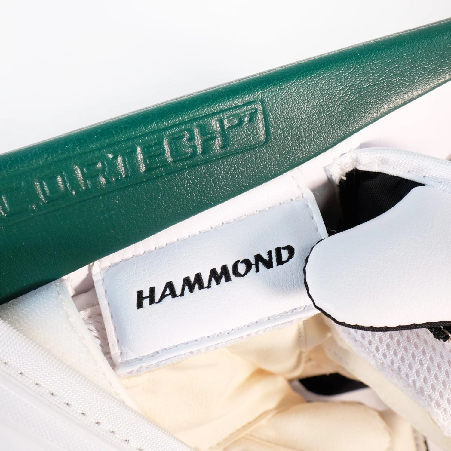 This custom Bauer Supreme Ultrasonic goalie set is a pro return from NHL goalie Andrew Hammond. The set includes a catcher and blocker and has been outfitted with Hammond’s specs and preferences, including different constructs, custom features, and Iowa/Minnesota Wild colours.