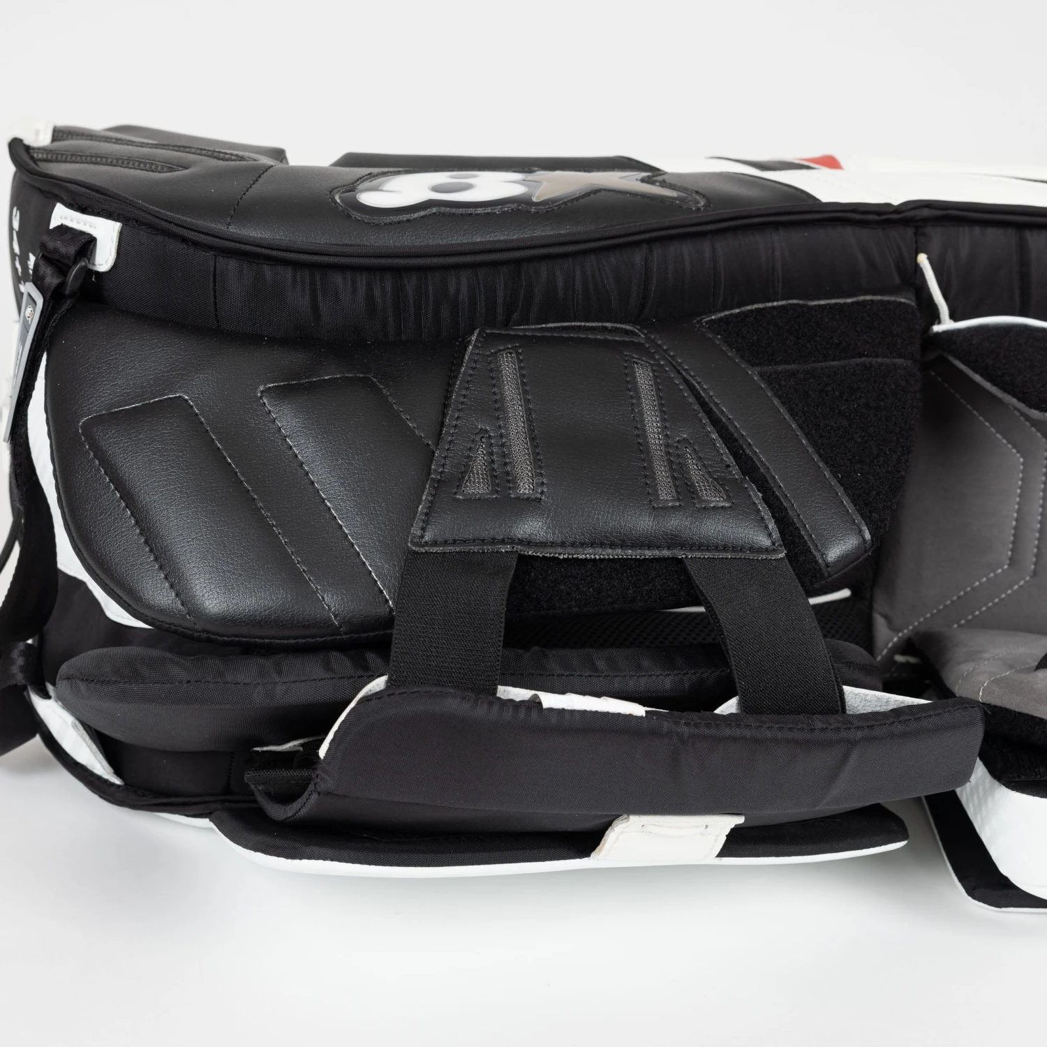 Brian’s leg pads stick with an 80° toe taper in the X5 for smooth transitions and pushes without the pad accidentally getting in the way. The X5 uses a fairly flat boot style for increased comfort and better affinity with your natural leg shape. The boot break is softer on these pads, so they can maneuver more with you while you play.