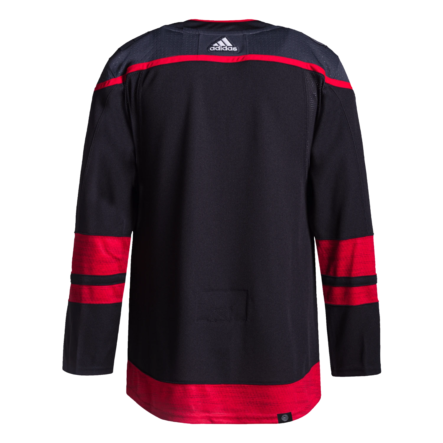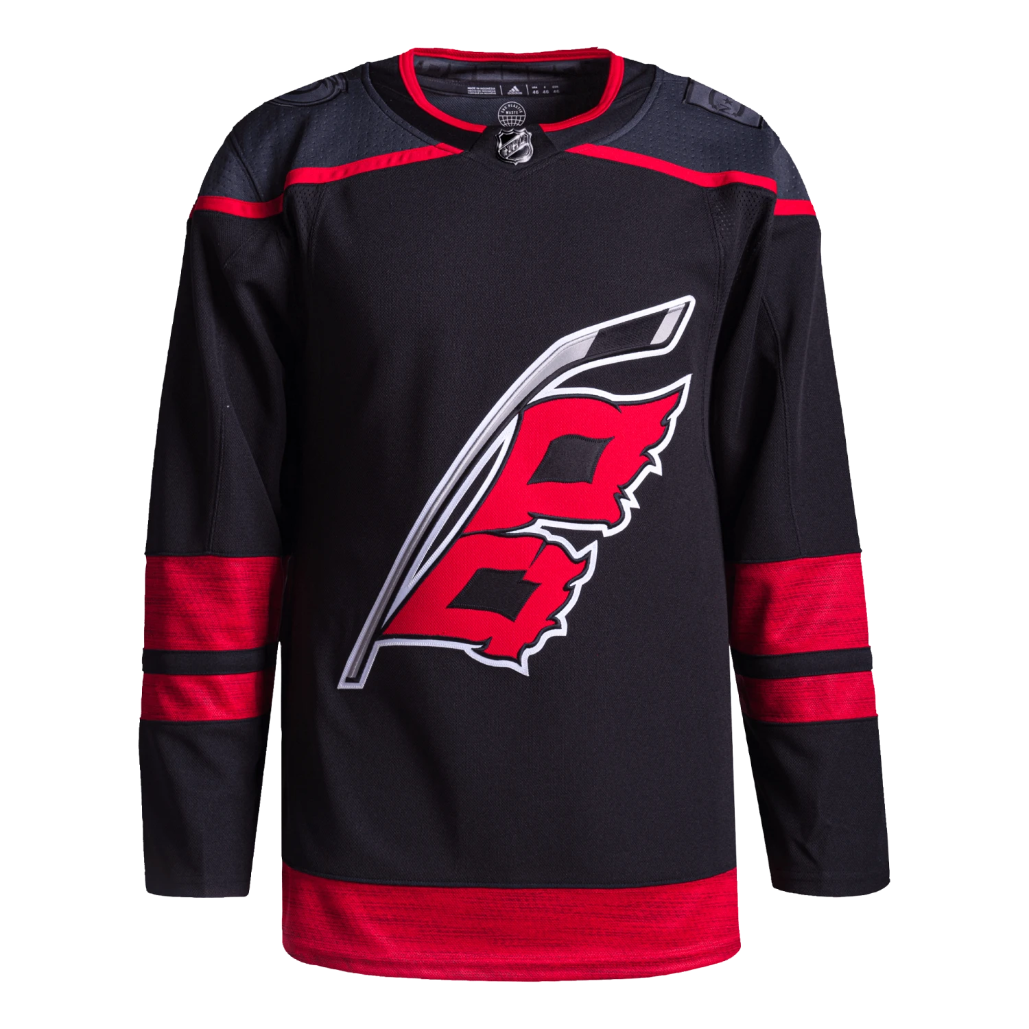 Cheer on the Carolina Hurricanes in their quest for a second Stanley Cup. The big crest out front, shoulder patches and a fight strap with a snap closure make this adidas authentic alternate jersey a mirror image of what the players wear. AEROREADY keeps you cool and dry as your hands fly higher with every win. This product is made with Primegreen, a series of high-performance recycled materials.