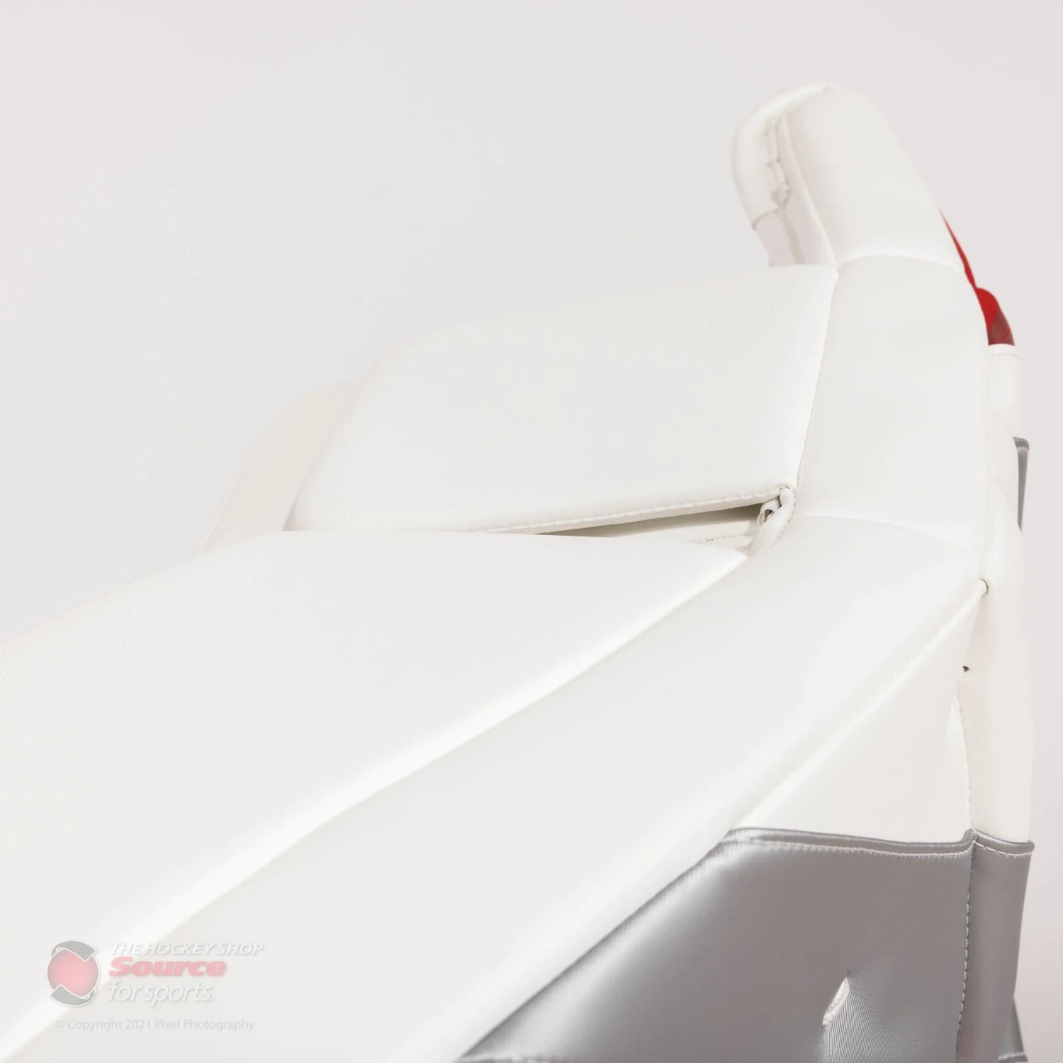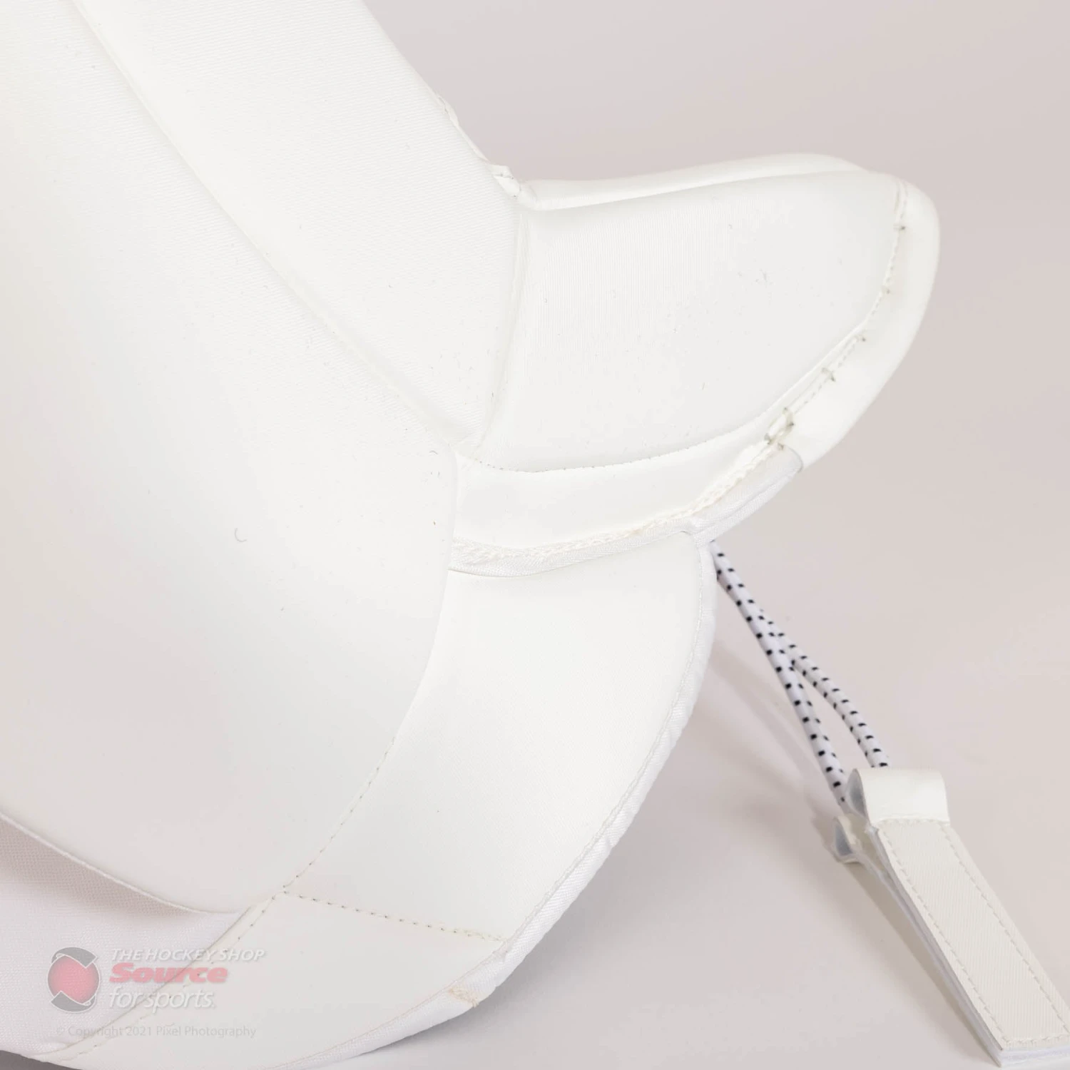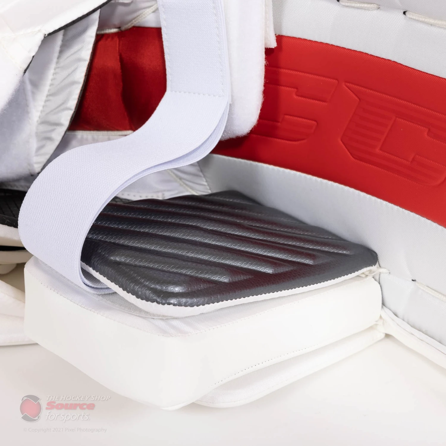 The E-Flex 5 features CCM’s Quick Motion strapping system. After prior success and growing NHL adoption, the QMS system continues on the EFlex 5. Through work with the biomechanics team at Western University, CCM was able to find out what straps were actually needed on a pad, along with which configuration performed the best. The two velcro calf straps and knee strap make the pad lighter, along with giving the pad great responsiveness and butterfly drop speed. The toe bridge of the Eflex 5 has a velcro bungee system, in the place of traditional skate lace. CCM’s bungee system is quick and secure, and allows for more flexibility, easing the stress on goalies’ joints.