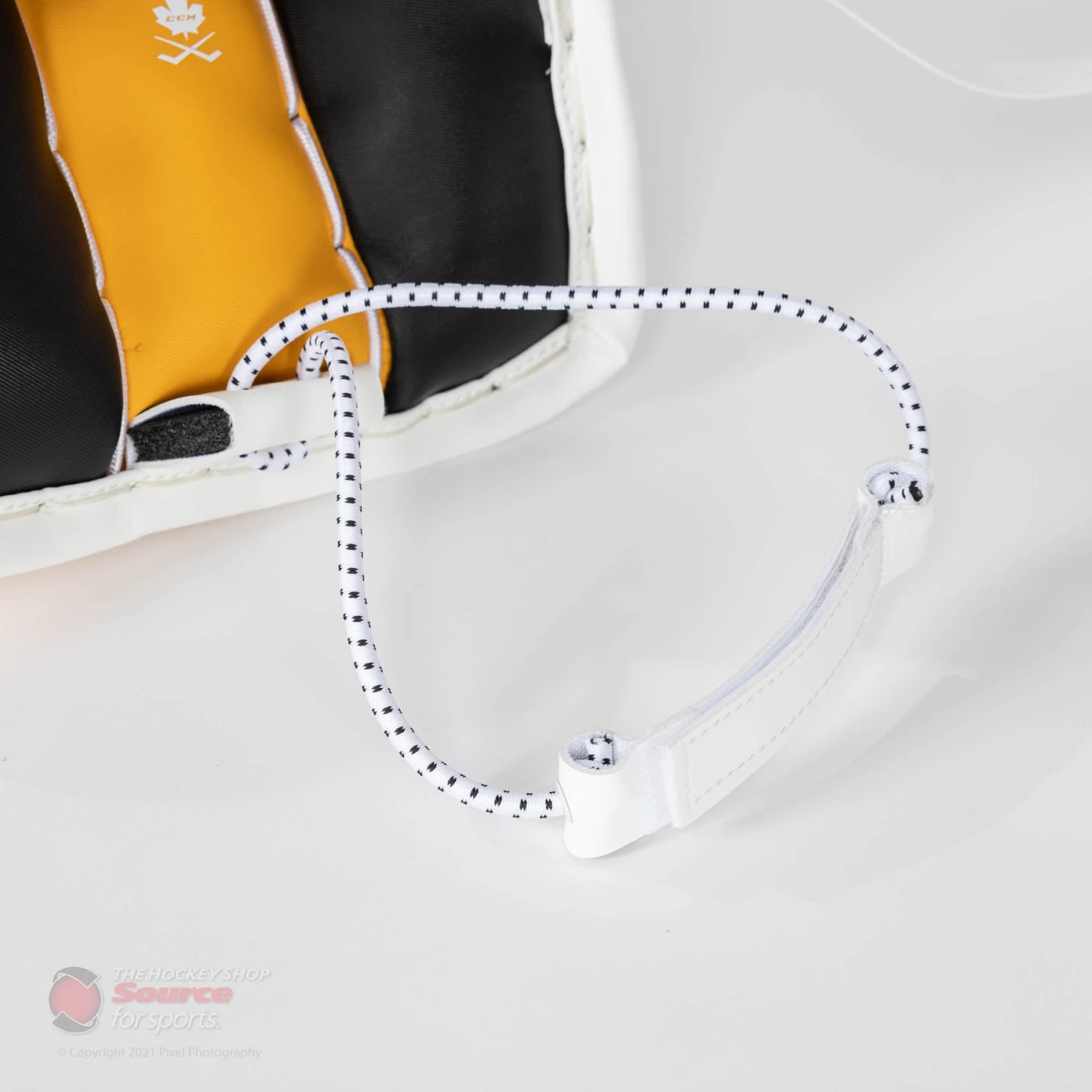The EFlex E5.9 features CCM’s Quick Motion strapping system. Through work with the biomechanics team at Western University, CCM was able to find out what straps were actually needed on a pad, along with which configuration performed the best. The two velcro calf straps and knee strap make the pad lighter, along with giving the pad great responsiveness and butterfly drop speed. The toe bridge of the EFlex 5.9 has a velcro bungee system, in the place of traditional skate lace. CCM’s bungee system is quick and secure, and allows for more flexibility, easing the stress on goalies’ joints.