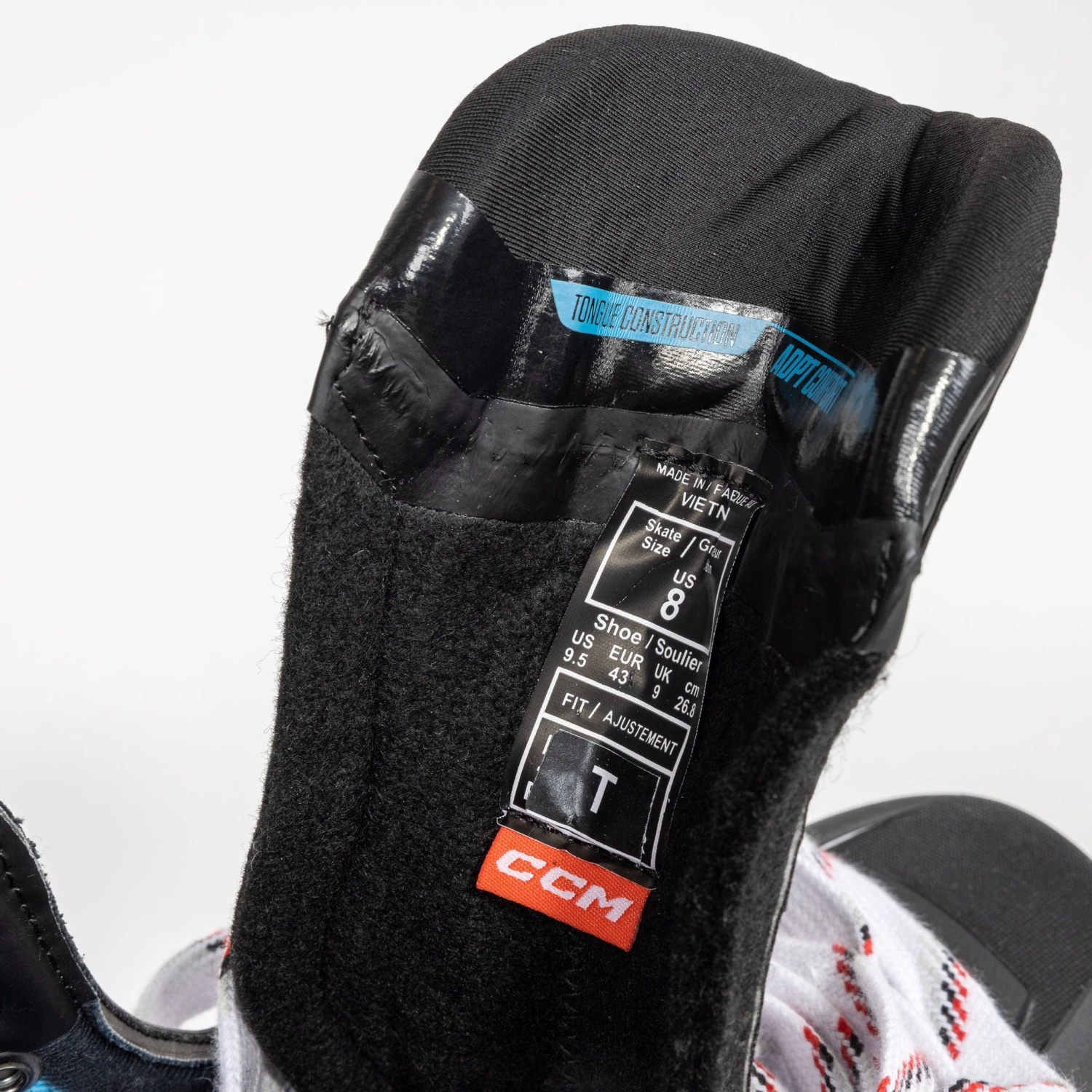 CCM put a major focus on comfort and making their skates game-ready right out of the box; to implement this, they enhanced the fit to a Game Ready Fit 2.0. The philosophy was that no one wants to wear uncomfortable hockey skates; the various ADPT memory foams and seamless comfort incorporated in the inner padding help accomplish this feat at all levels. Game Ready Fit 2.0 is based on the Tacks 2022 and improves on the design with more wrap and better heel pocket lock, with a wider bottom and more shaping in the back.