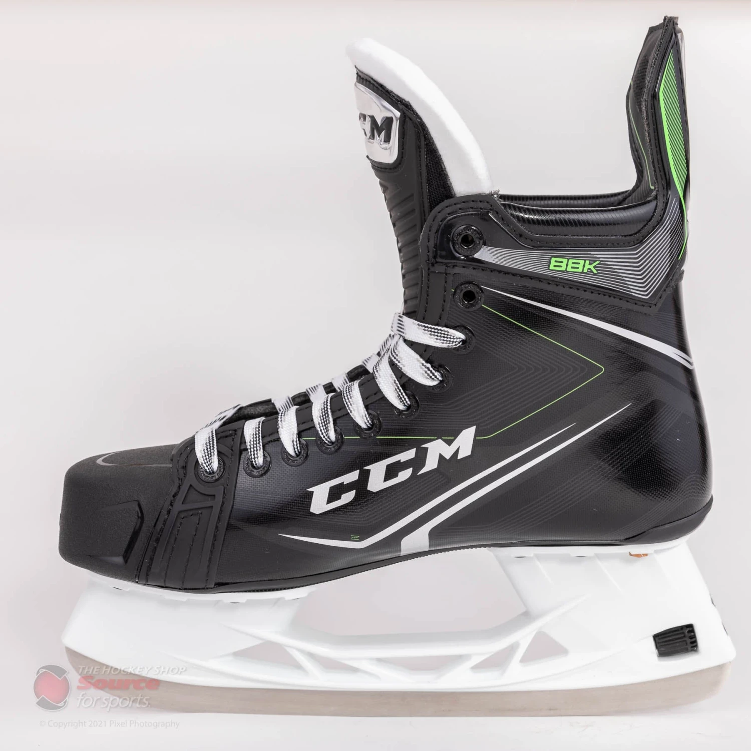 The quarter package on the CCM 88K features Metaframe technology. This technology is infused into the RFM composite boot which is an NHL-caliber lightweight composite material. The 88K also features a dual injected reinforced outsole with an exhaust system. This keeps the boot lightweight, and provides better energy transfer while the exhaust system wicks moisture out of the boot.
