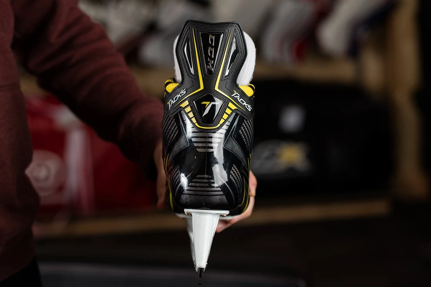 The CCM Super Tacks were engineered through leading biomechanics research in hockey and state-of-the-art construction technology. Five years in the making, the Super Tacks skates are well worth the wait. Most notably, a full one-piece carbon composite boot provides a fully anatomically shaped fit that runs through the toe cap and outsole to achieve maximum comfort while providing unmatched performance.