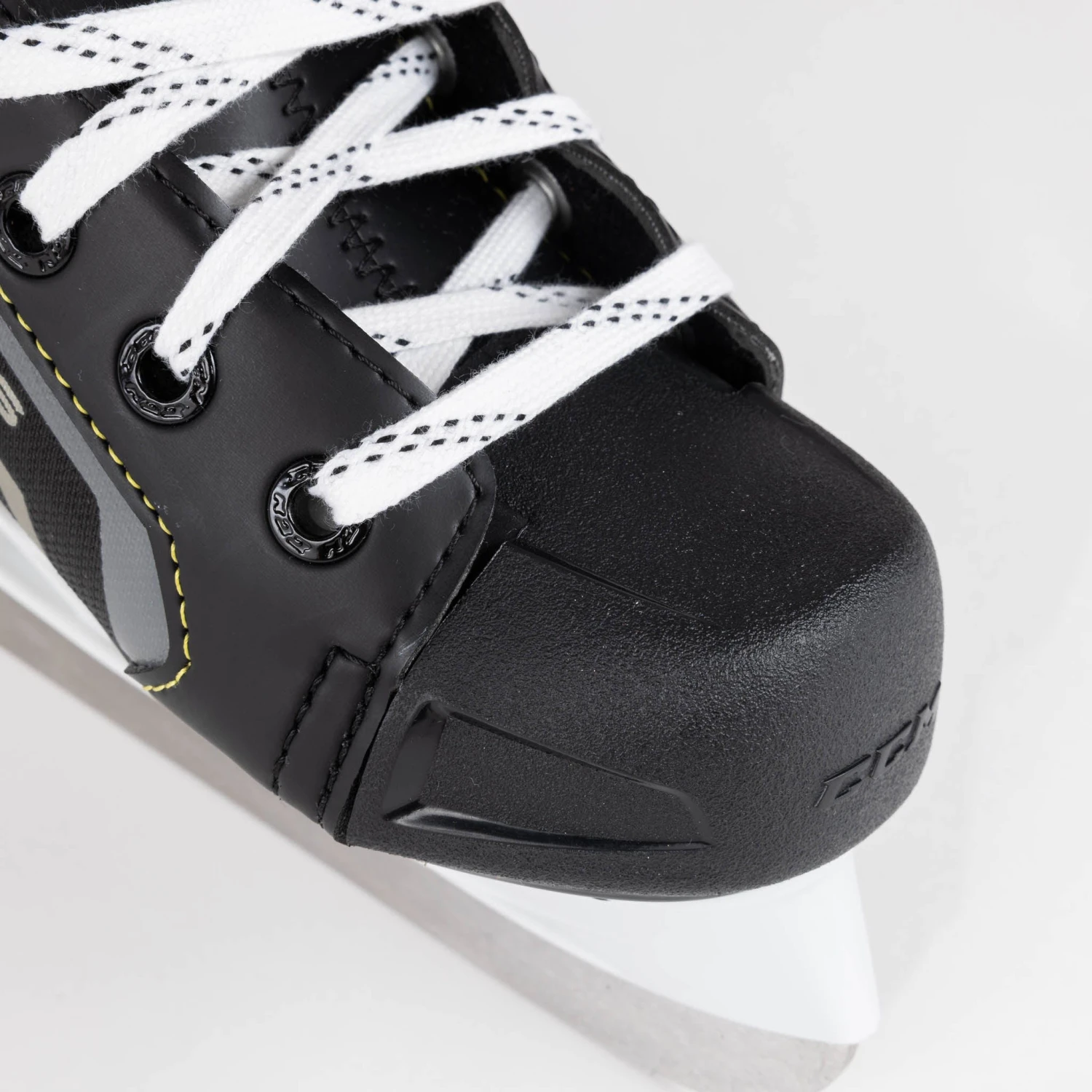 Similar to higher-end adult skates, the tongue on this skate is 7mm and asymmetrical for more flexibility and comfort while skating. In the Youth skate, the eyelets and tendon guard are designed specifically to help both the player and person tying their skates. The Easy-Tie Eyelets are at the top of the skate and use a simple hook eyelet system to make the skate tying process much easier.Â