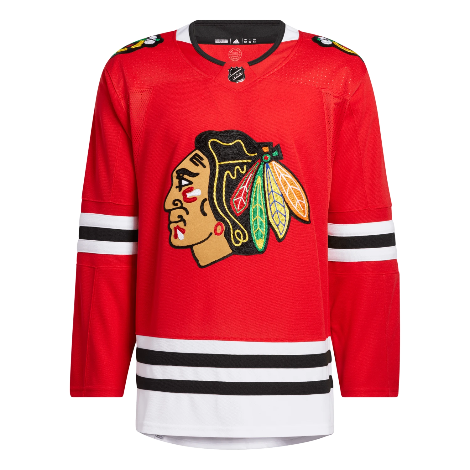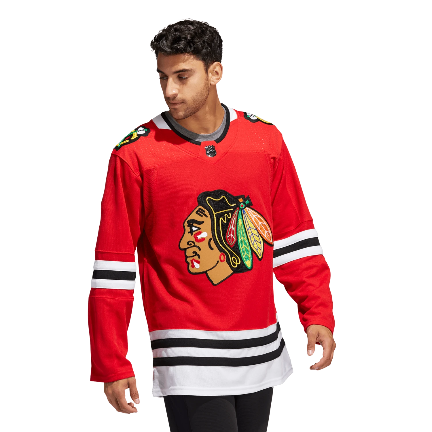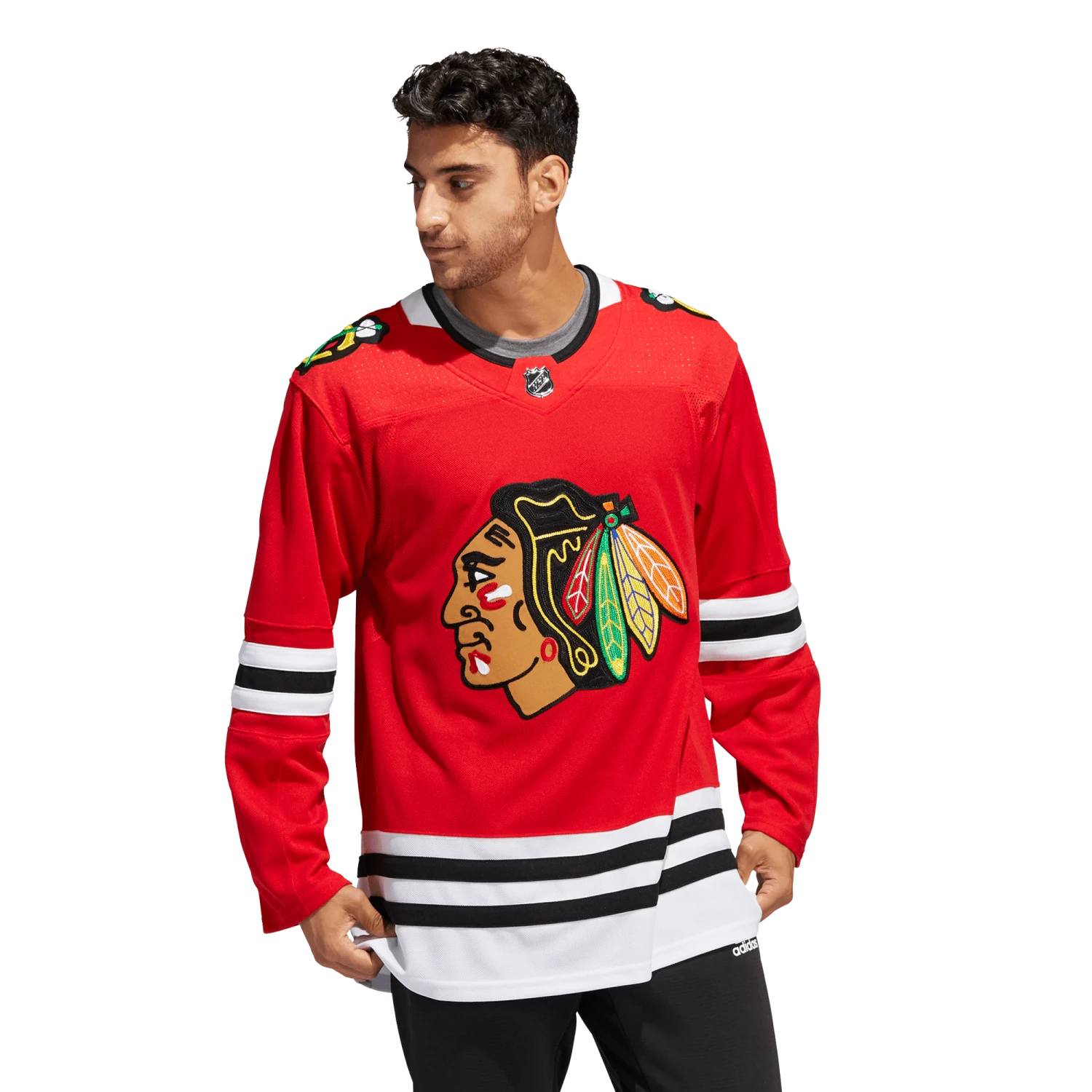 Stroll around the Windy City with your Chicago Blackhawks pride in full view in this adidas authentic home game jersey. AEROREADY keeps you cool as you pick up supplies for tonight’s tailgate party. A mesh underarm insert adds extra breathability when the hot sauce on the wings kicks in. This product is made with Primegreen, a series of high-performance recycled materials.