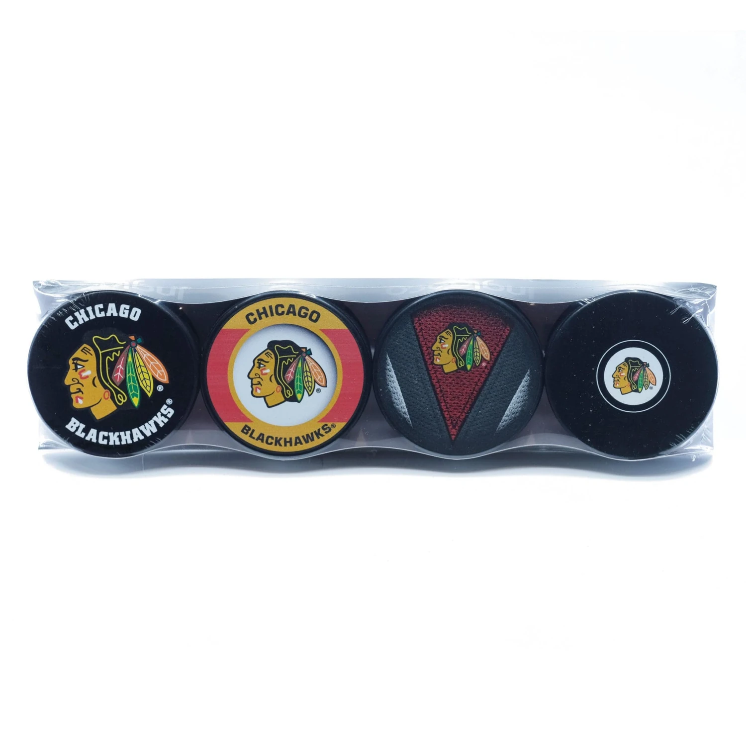 Chicago Blackhawks Inglasco NHL Logo Hockey Puck (4 Pack)