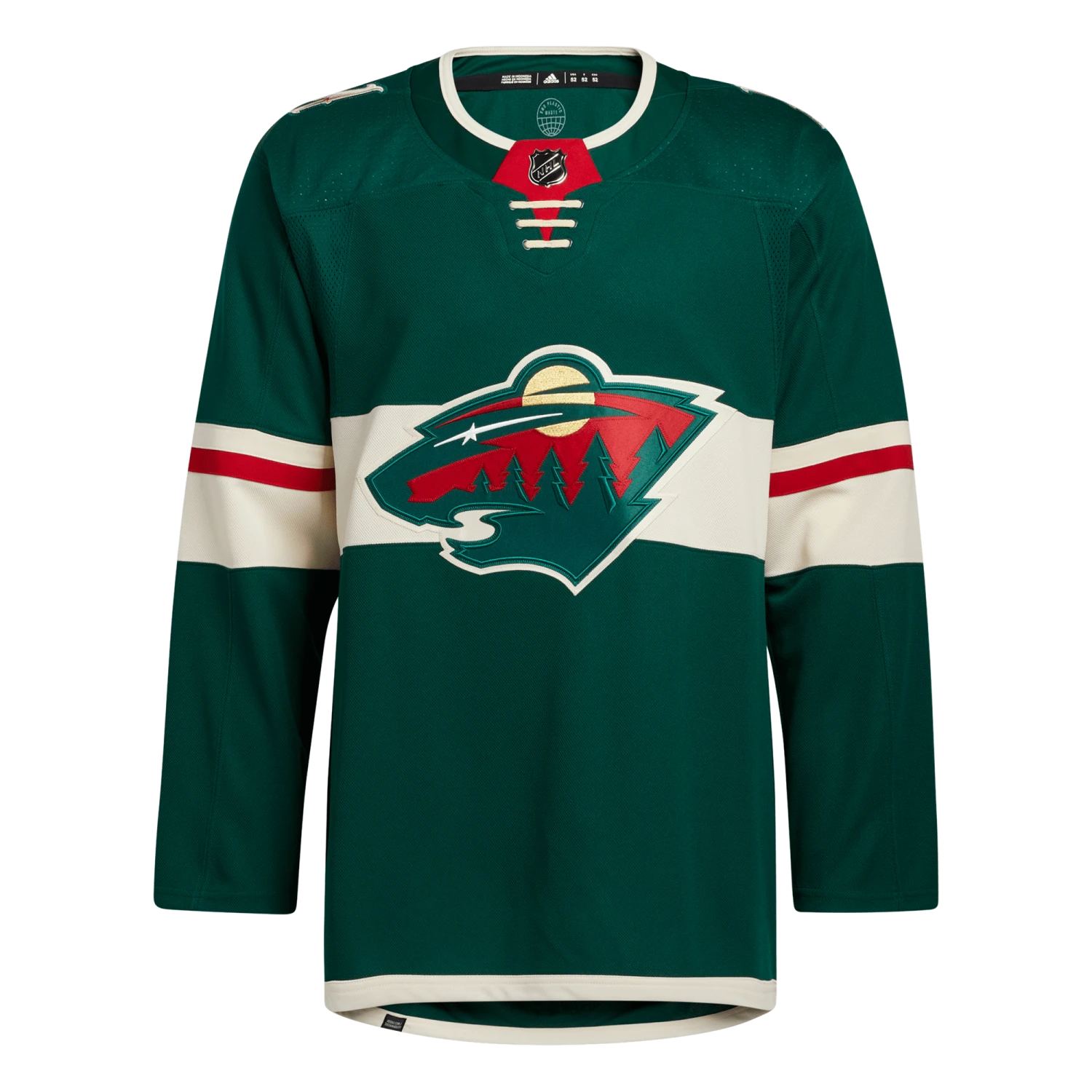 Pull on this adidas Minnesota Wild authentic home jersey, and get the gang together for game night in your fan cave. AEROREADY keeps you cool and dry as you wait for the puck to drop at center ice. The big crest out front, shoulder patches and a fight strap with a snap closure keep the look legit. This product is made with Primegreen, a series of high-performance recycled materials.