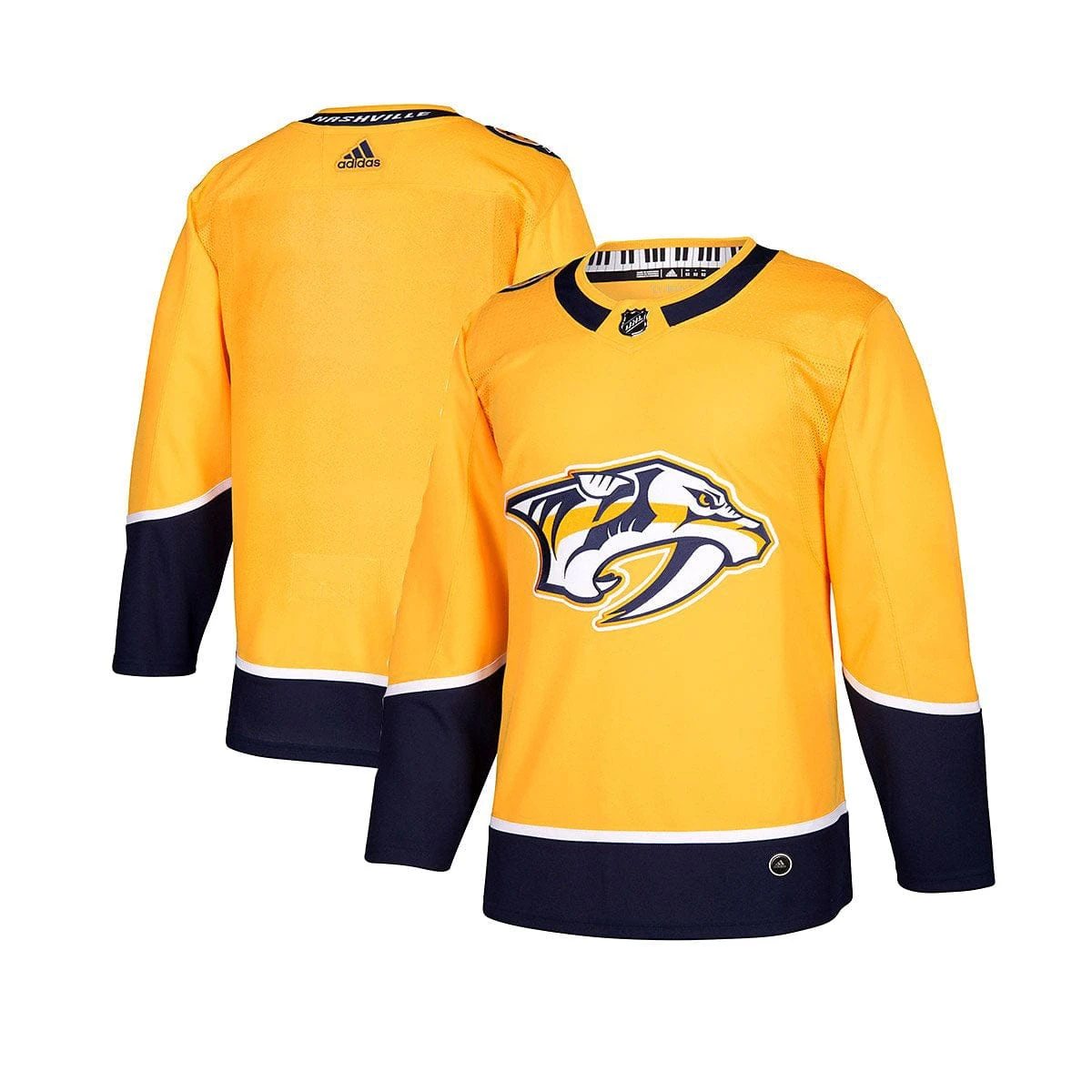The Nashville Predators Home Adidas Authentic Senior Jersey is an officially licensed jersey of the NHL. The new and improved authentic team jerseys show your devotion to your favourite team, with the addition of the original Adidas climalite technology to maximize mobility and enhance performance. The new touch of the sewn, platinum NHL Shield under the front collar gives these jerseys its finishing touch on becoming the new look of the NHL.
