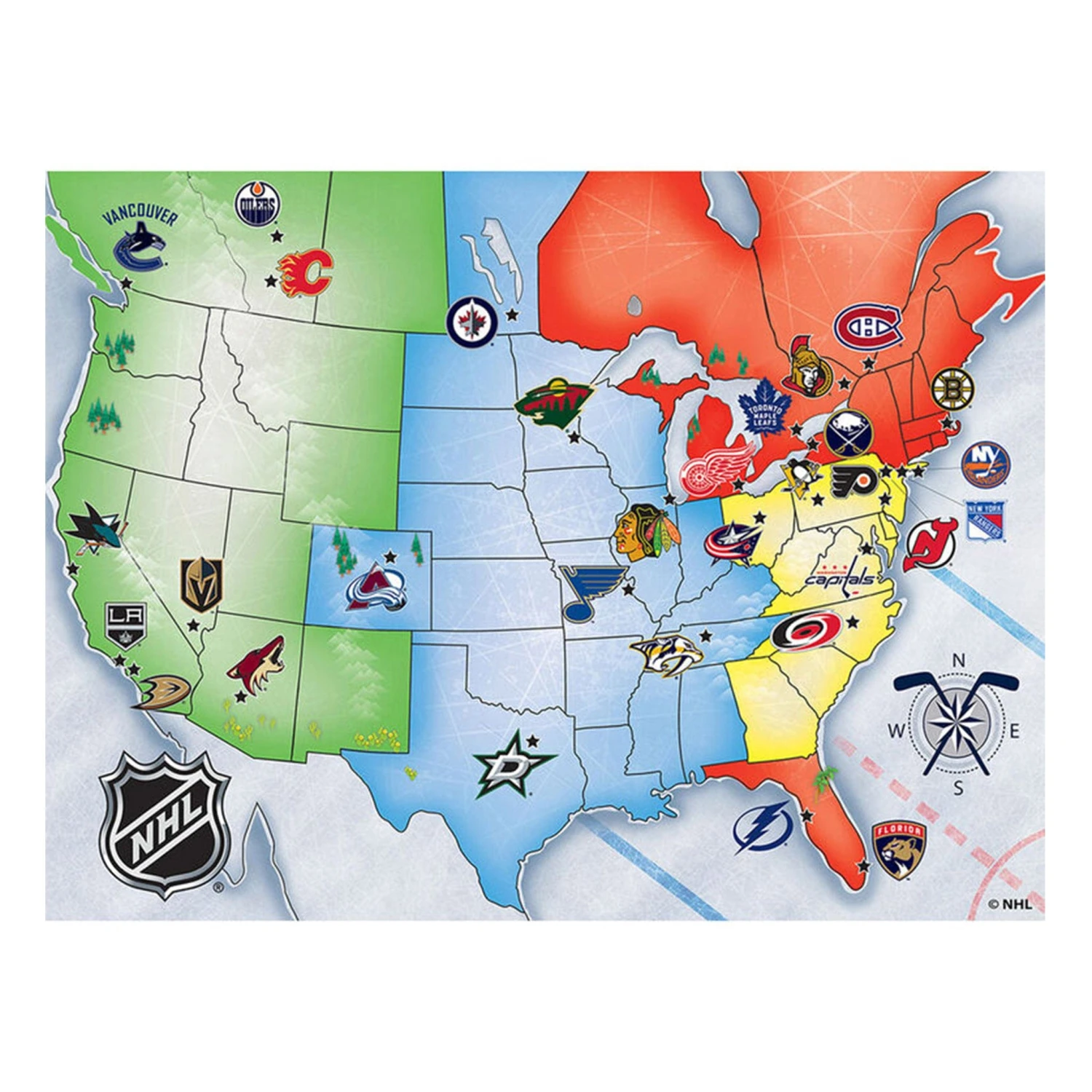 Made for any diehard hockey fan, this 500pc jigsaw puzzle will take you on a journey to all your favorite NHL teams! Get your game face on and challenge yourself to complete the 24″ x 18″ Sports Map Puzzle – no matter what team you’re a fan of, you won’t be able to resist the allure of piecing together them all!