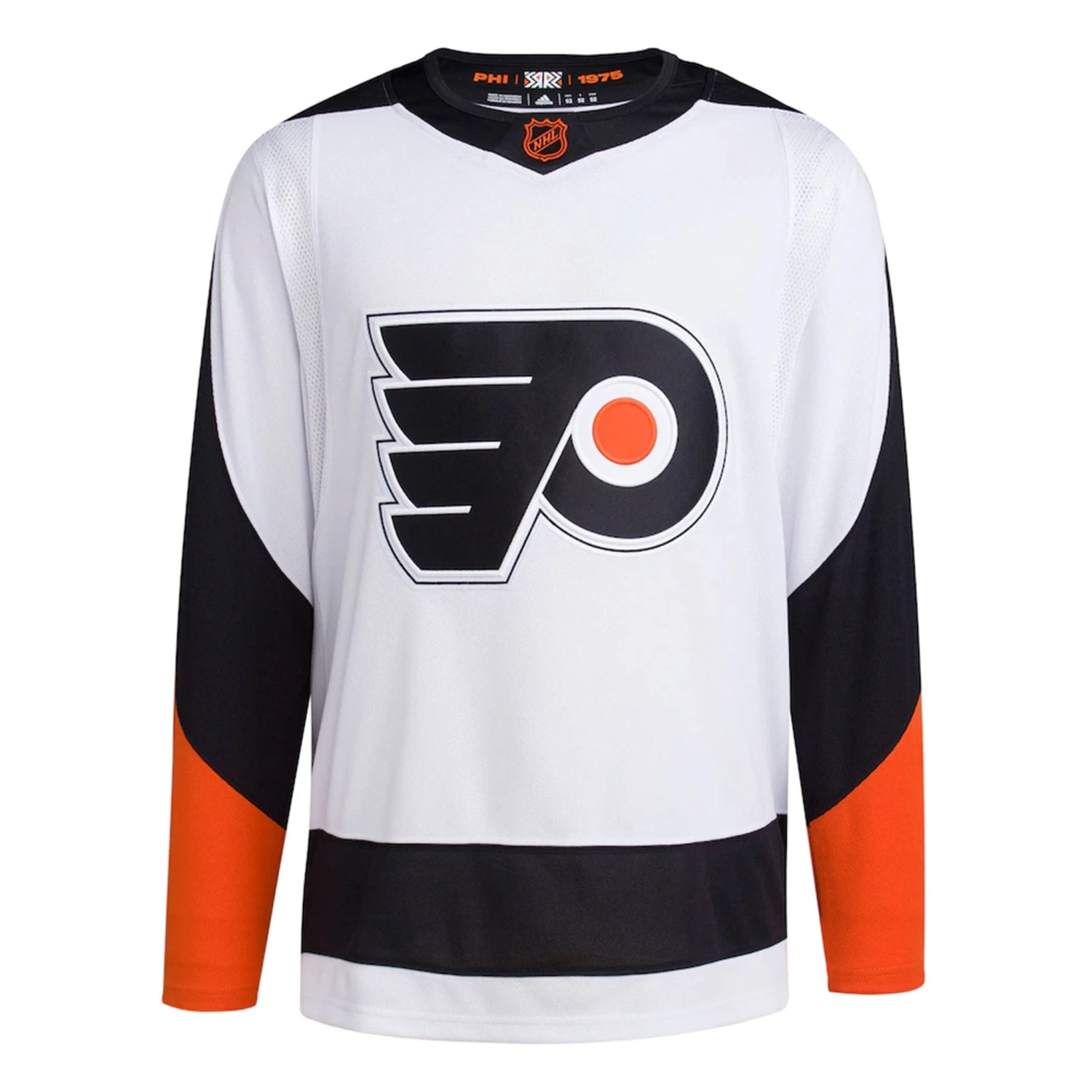 Pull on this Philadelphia Flyers Adidas PrimeGreen Reverse Retro Senior Jersey, and get the gang together for game night in your fan cave. AEROREADY keeps you cool and dry as you wait for the puck to drop at center ice. The big crest out front, shoulder patches and a fight strap with a snap closure keep the look legit. This product is made with Primegreen, a series of high-performance recycled materials.