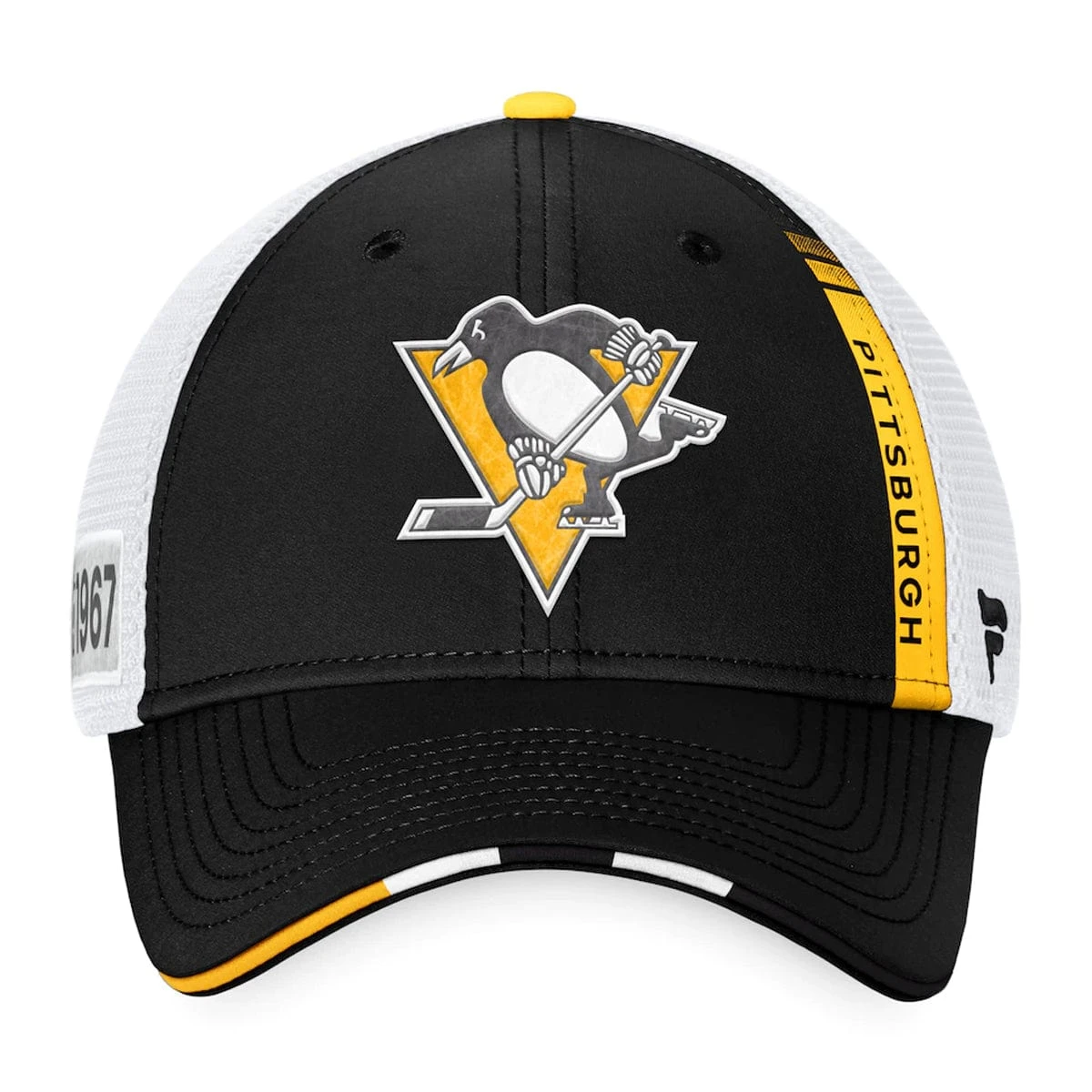 Get excited for the upcoming season as the Pittsburgh Penguins add fresh, new talent to their lineup by grabbing this 2022 NHL Draft Authentic Pro On Stage Trucker Adjustable Hat. Its high crown adds style while its mesh panels add ventilation, keeping you comfortable all day long. This Fanatics Branded gear sports the same design and Pittsburgh Penguins graphics that the players will be wearing during the draft, ensuring that you always look and feel like the real deal.