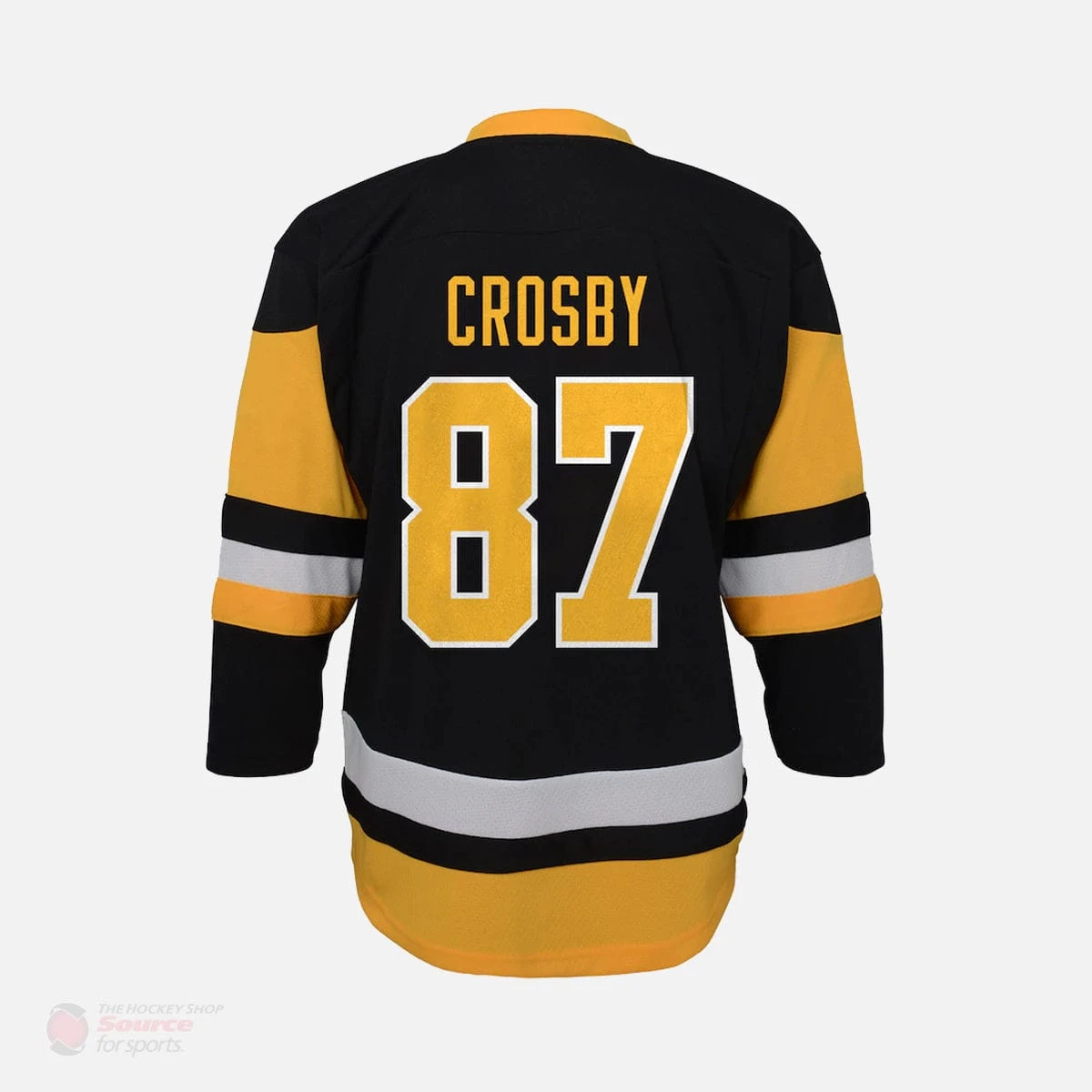 The Pittsburgh Penguins Home Outer Stuff Replica Junior Sidney Crosby Jersey is officially licensed with the NHL. Featuring authentic feeling material, and crisp team logos, the Outerstuff Replica Breakaway Hockey Jersey is the perfect way to show off your team spirit!
