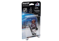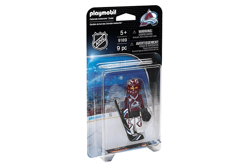 Back the net with the NHL™ Colorado Avalanche™ Goalie. Set includes 1 Colorado goalie, 1 stick, 1 puck, helmet with visor, goalkeeper glove, and 1 arm cuff.