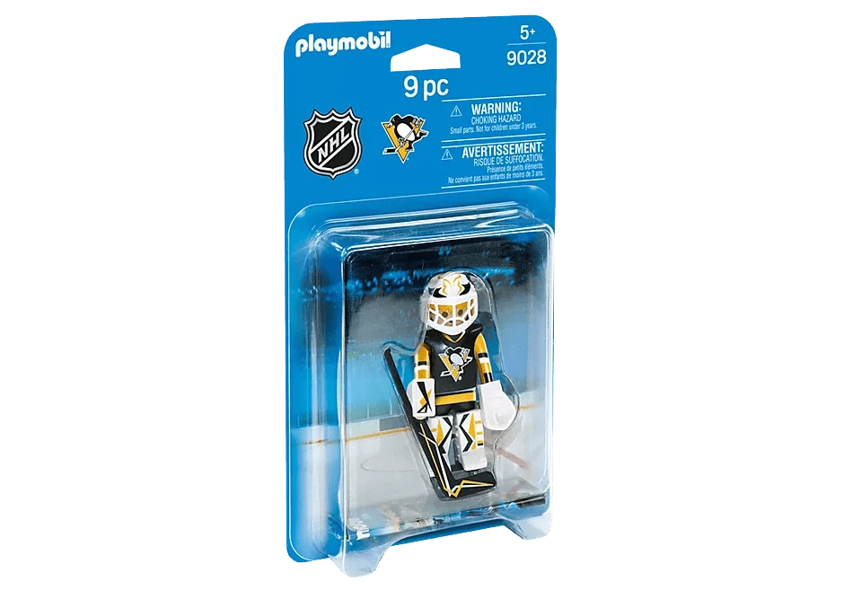 Back the net with the NHL™ Pittsburgh Penguins™ Goalie. Set includes 1 Pittsburgh goalie, 1 stick, 1 puck, helmet with visor, goalkeeper glove, and 1 arm cuff.