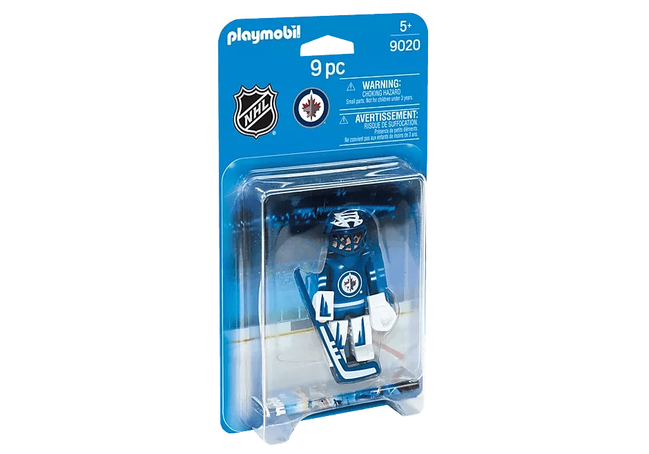 Back the net with the NHL™ Winnipeg Jets™ Goalie. Set includes 1 Winnipeg goalie, 1 stick, 1 puck, helmet with visor, goalkeeper glove, and 1 arm cuff.