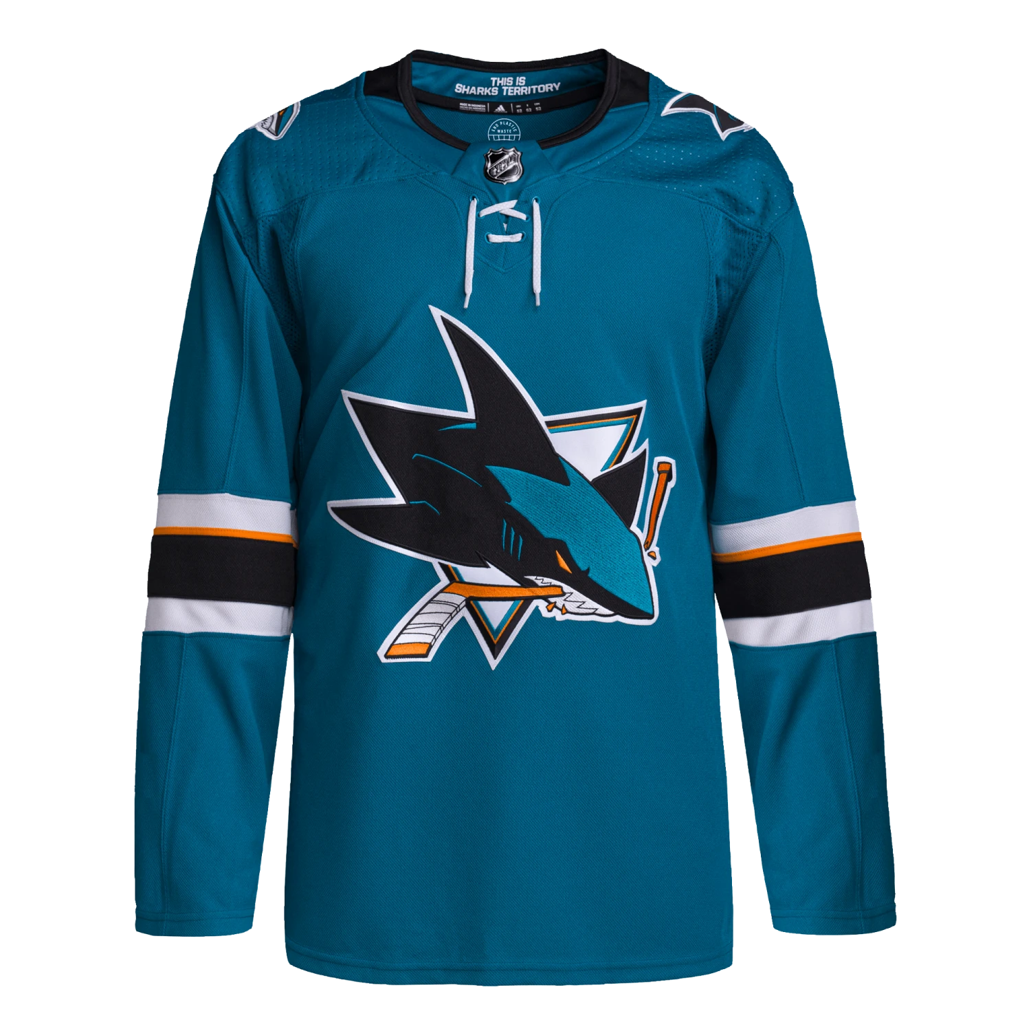 Pull on this adidas San Jose Sharks authentic home jersey, and get the gang together for game night in your fan cave. AEROREADY keeps you cool and dry as you wait for the puck to drop at center ice. The big crest out front, shoulder patches and a fight strap with a snap closure keep the look legit. This product is made with Primegreen, a series of high-performance recycled materials.