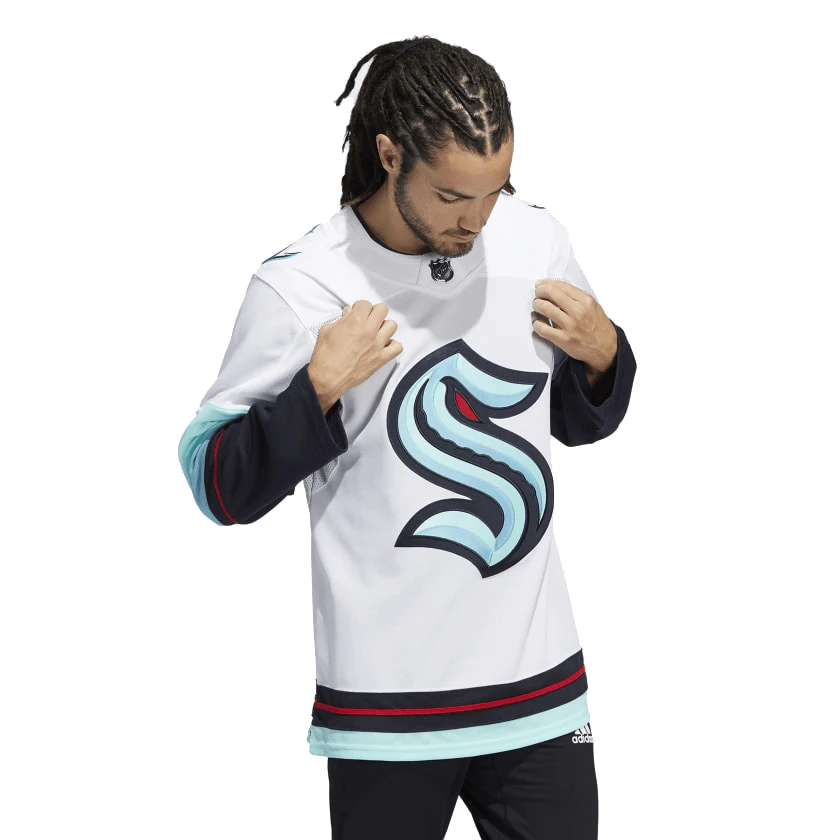Celebrate Seattle hockey when they’re on the road in the Seattle Kraken Away Adidas PrimeGreen Senior Jersey. Mesh ventilation and moisture-absorbing AEROREADY ensure you stay dry and comfortable as you root for Seattle. Its loose fit and fight strap with a hook-and-loop closure stay true to the classic jersey look. This jersey is made with Primegreen, a series of high-performance recycled materials.