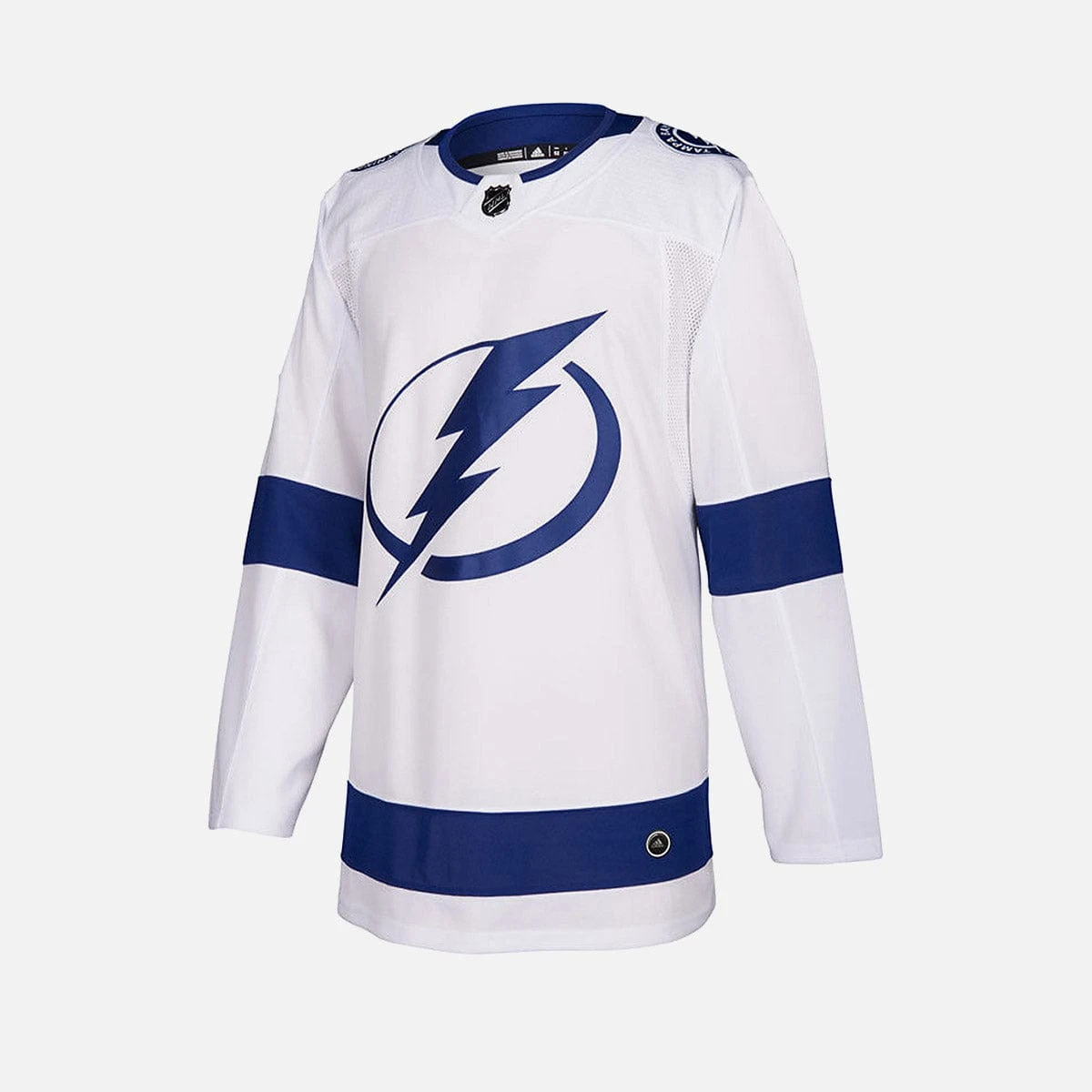 The Tampa Bay Lightning Away Adidas Authentic Senior Jersey is an officially licensed jersey of the NHL. The new and improved authentic team jerseys show your devotion to your favourite team, with the addition of the original Adidas climalite technology to maximize mobility and enhance performance. The new touch of the sewn, platinum NHL Shield under the front collar gives these jerseys its finishing touch on becoming the new look of the NHL.