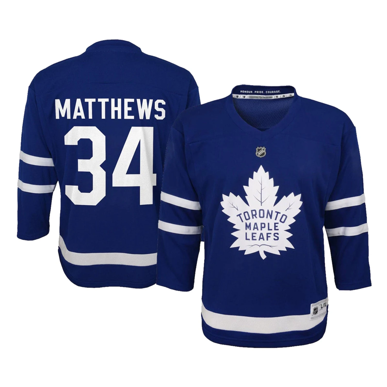 The Toronto Maple Leafs Home Outer Stuff Replica Junior Auston Matthews Jersey is officially licensed with the NHL. Featuring authentic feeling material, and crisp team logos, the Outerstuff Replica Breakaway Hockey Jersey is the perfect way to show off your team spirit!