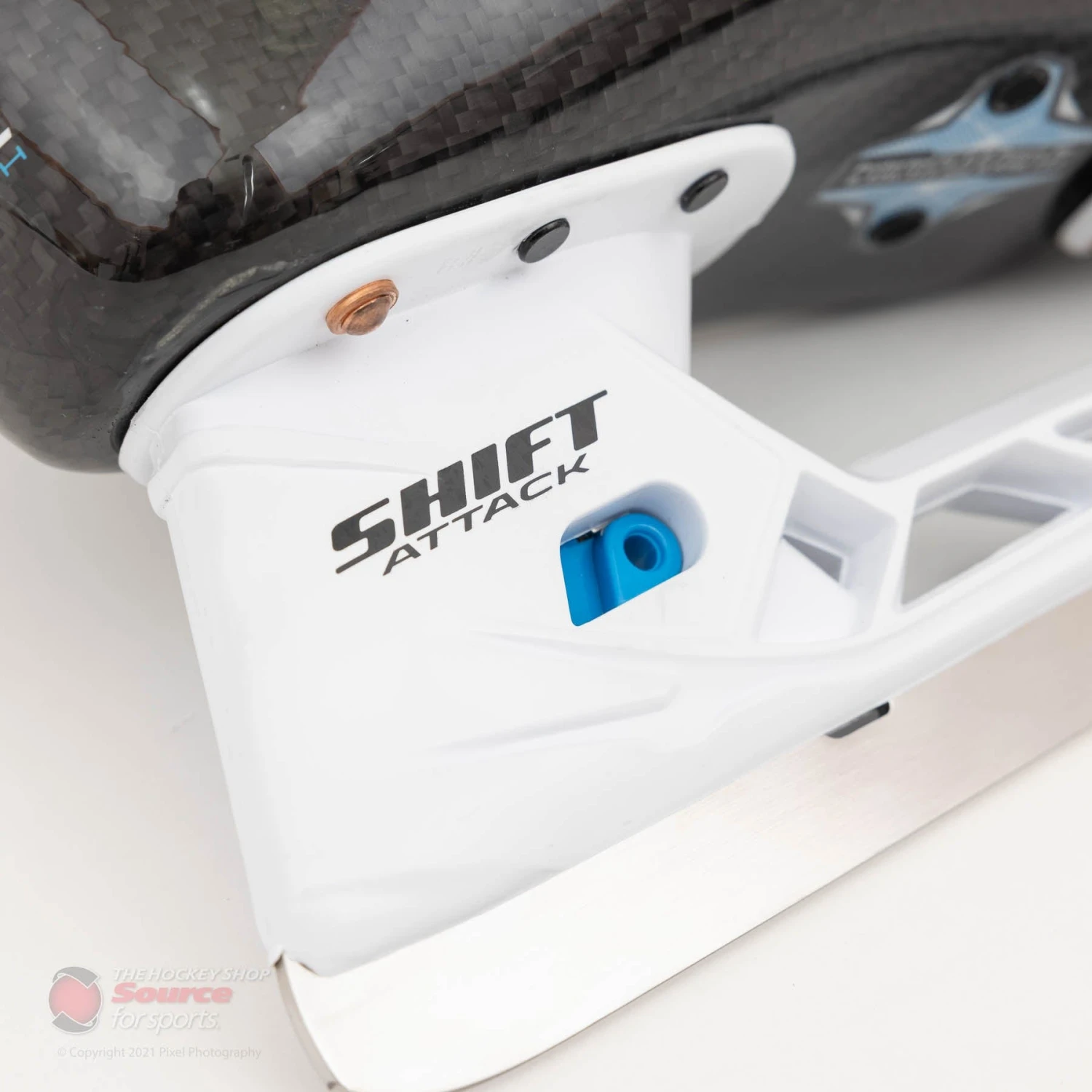 After years of waiting, TRUE has finally made a goalie specific version of their Shift holder called the Shift Attack holder. It features the same BenchChange tool-less blade release as seen on the player holder. The steel seen on the TF9 is also brand new; a Shift Stainless 3mm blade comes stock and is a taller steel similar to the LS3G+ from Bauer. Optional offset 4mm Stainless and DLC black steel blades are available for goalies who want that thicker steel seen on traditional TRUE skates.