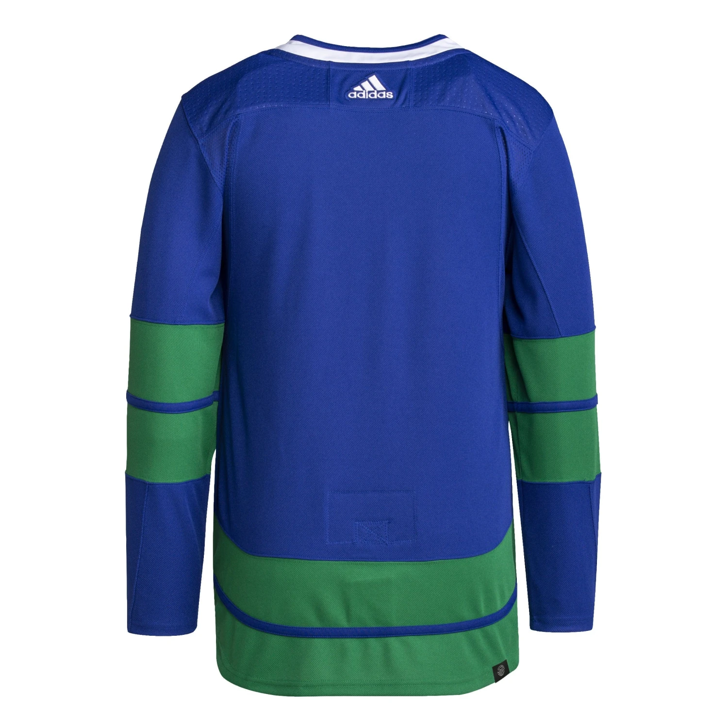 Get all your good luck gear together, pull on this Vancouver Canucks Alternate Adidas PrimeGreen Senior Jersey and cheer on your favorite team. AEROREADY keeps you cool as the Canucks’ descend on the net. A mesh underarm insert adds breathability as you jump to your feet when the goal horn sounds. This product is made with Primegreen, a series of high-performance recycled materials.