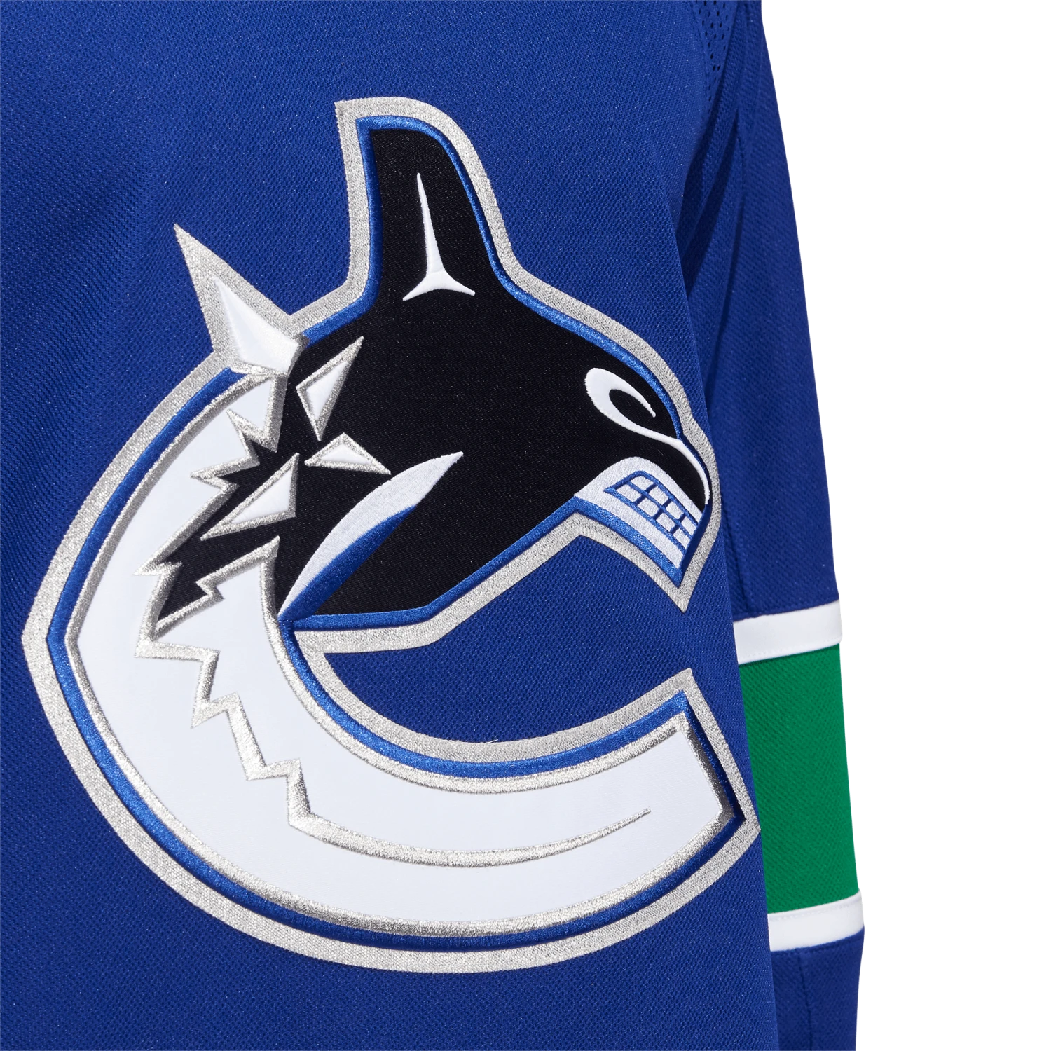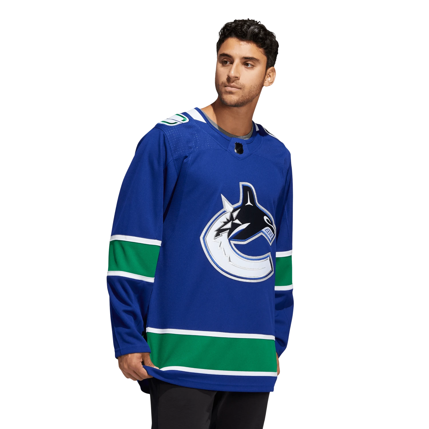 Cheer on the Vancouver Canucks as they close in on their first Stanley Cup. This adidas authentic home jersey features a big crest out front, shoulder patches and a fight strap with a snap closure so it mirrors what the players wear. AEROREADY keeps you cool and dry as your hands fly higher with every win. This product is made with Primegreen, a series of high-performance recycled materials.