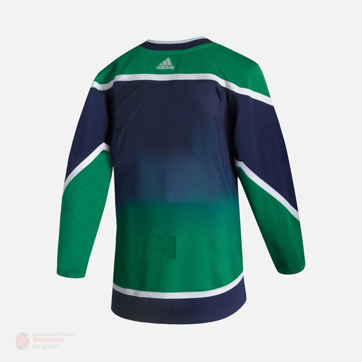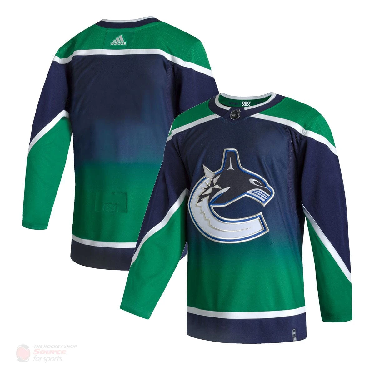 The Vancouver Canucks Reverse Retro Adidas Authentic Senior Jersey is an officially licensed jersey of the NHL. The new and improved authentic team jerseys show your devotion to your favourite team, with the addition of the original Adidas climalite technology to maximize mobility and enhance performance. The new touch of the sewn, platinum NHL Shield under the front collar gives these jerseys its finishing touch on becoming the new look of the NHL.