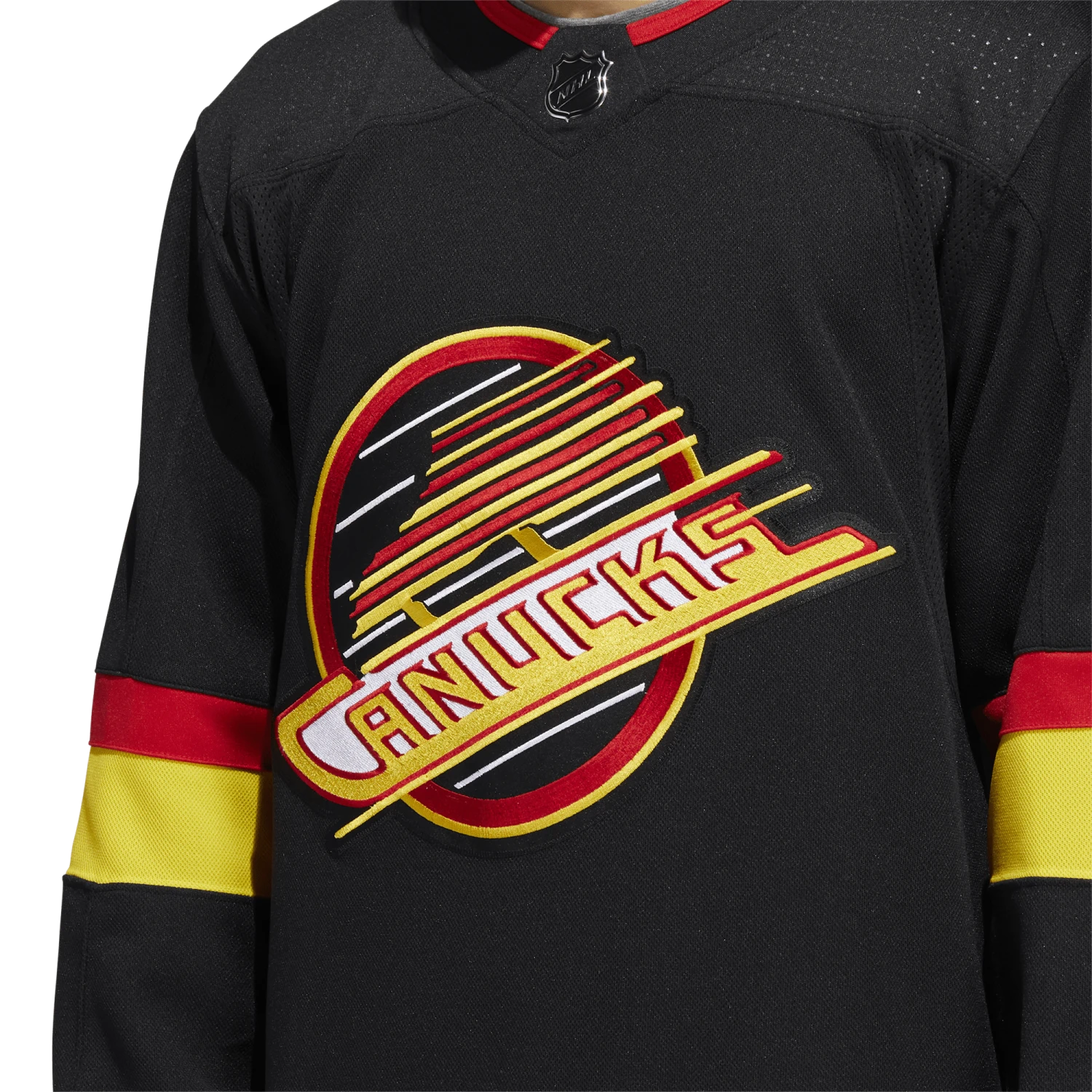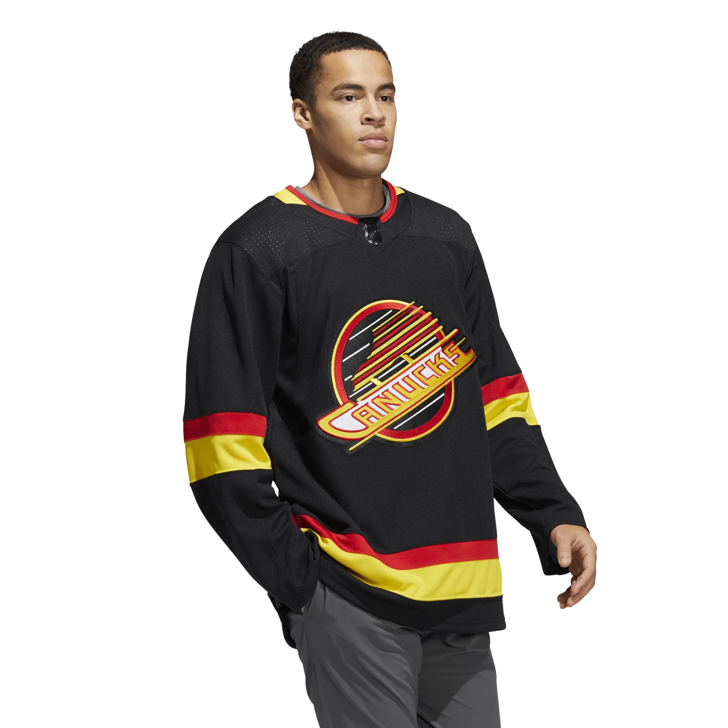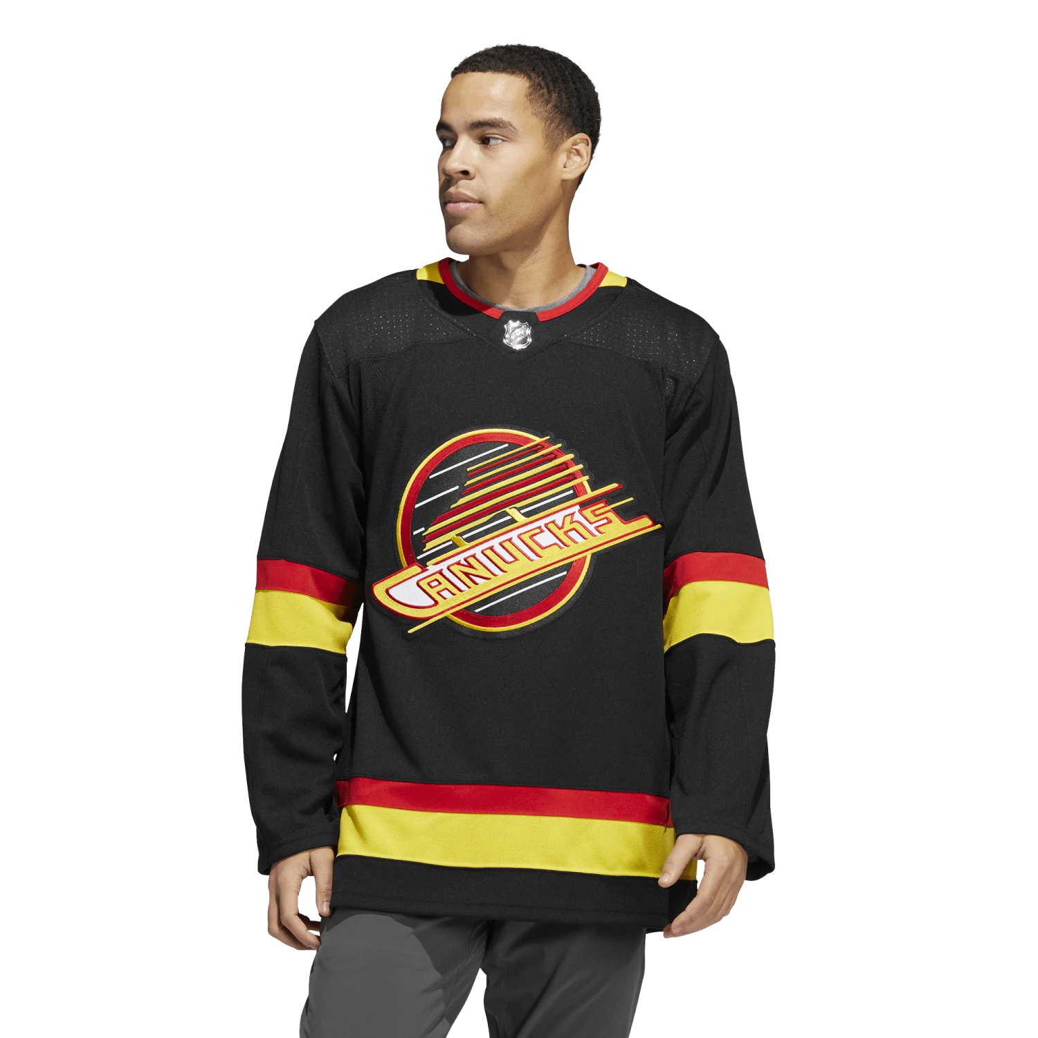 Pull on this adidas authentic retro jersey, and take a trip back to the ’90s, when the Interweb was just a baby, and the Vancouver Canucks broke all the rules with their wild sportswear designs. AEROREADY keeps you dry and ready for action as you relive fun times when fans did the Macarena during timeouts. Made with 100% recycled materials, this product represents just one of our solutions to help end plastic waste.