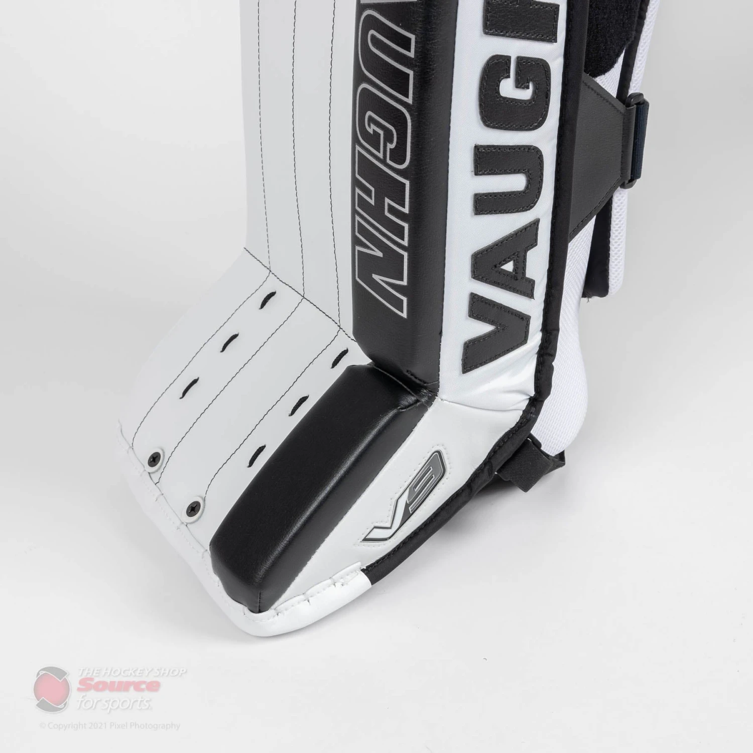 The V9 Pro Carbon leg pad takes advantage of Vaughn’s renowned Canadian made quality. Using only the best materials available to them, the V9 Pro Carbon uses a durable leather face combined with a QuickSlide slide surface and toe binding for superior slide and durability in high wear areas. A soft, comfortable Nash-like material lines the knee block, upper calf and instep leading into the calf wrap made of a breathable, durable nylon interior with a lightweight mesh exterior.