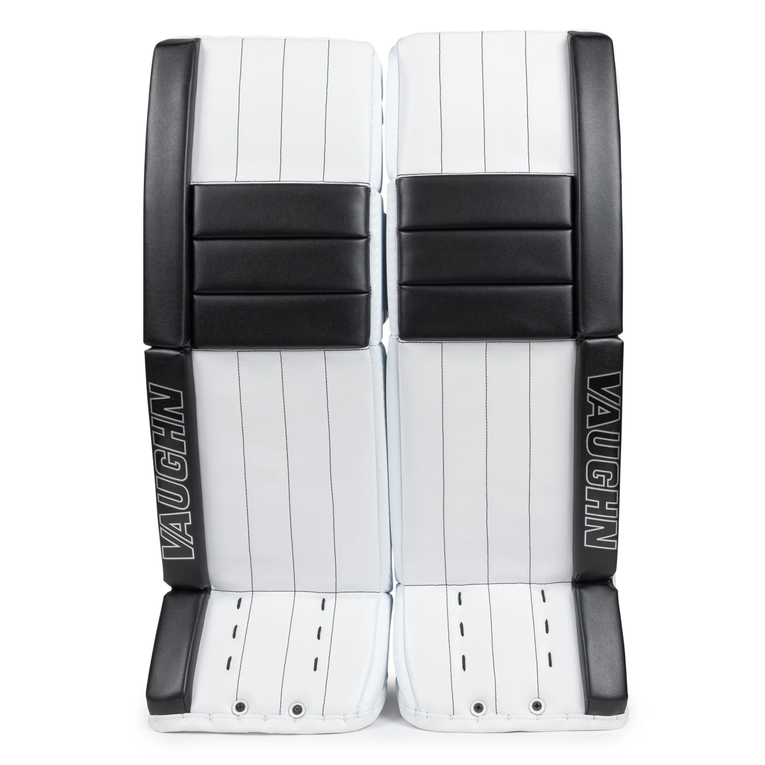 The Vaughn Velocity V9 Pro Carbon leg pads are designed to give the elite level goaltender the ideal combination of modern technologies with a traditional feel. Built with a Pure Carbon insert running the length of the pad along with high quality foams, the V9 Pro Carbon is able to offer a soft feel while remaining durable and maintaining its easily flexible pre-curved shape.