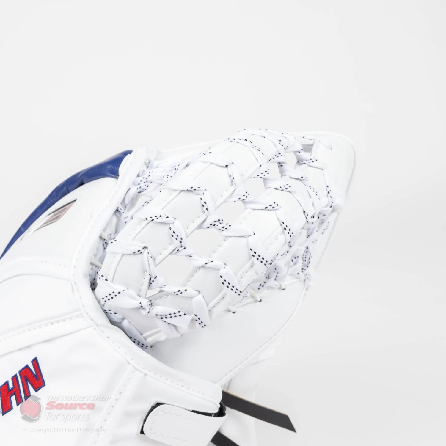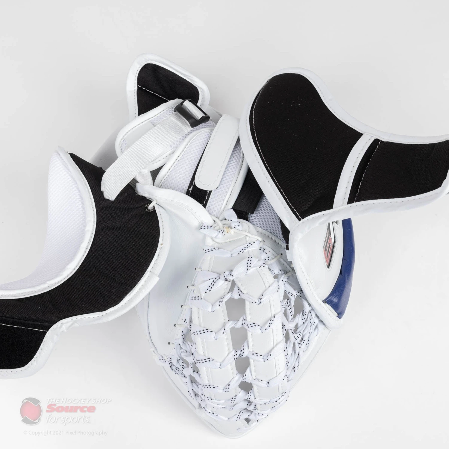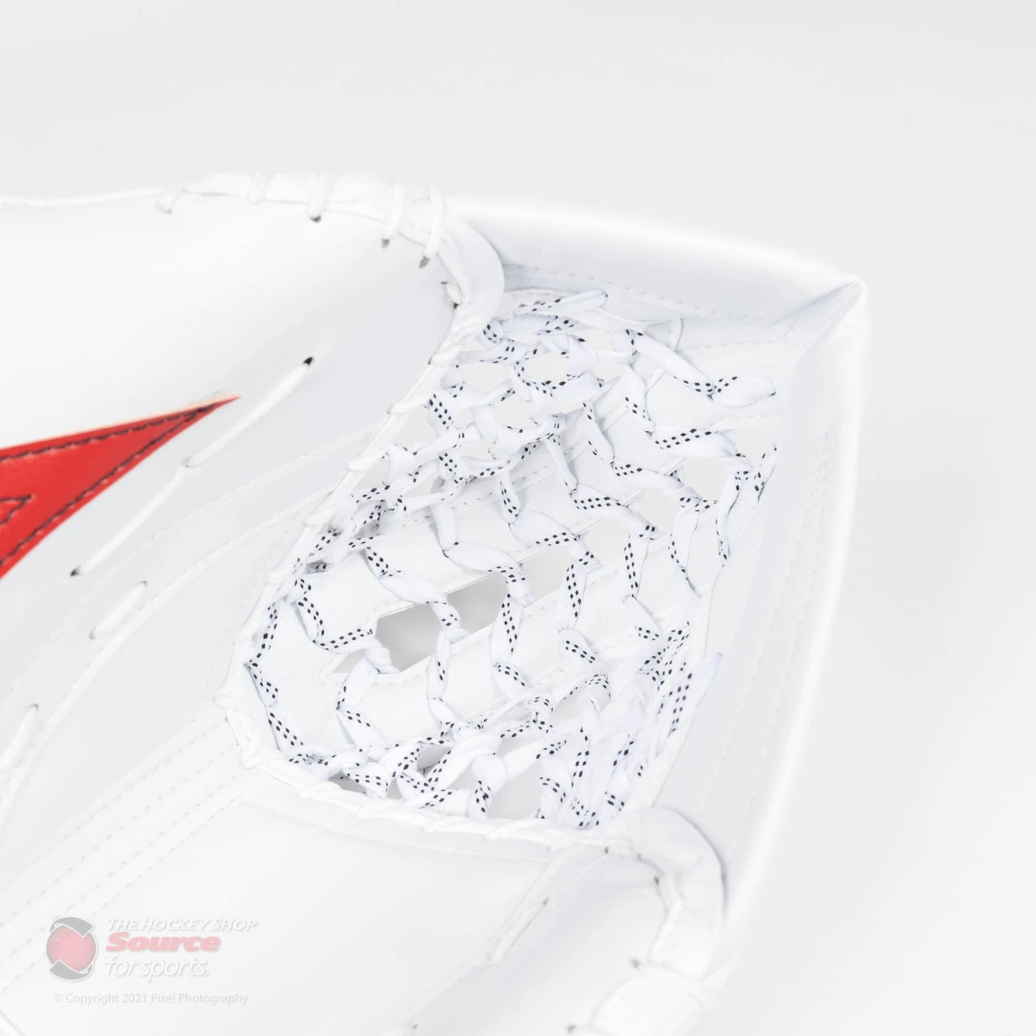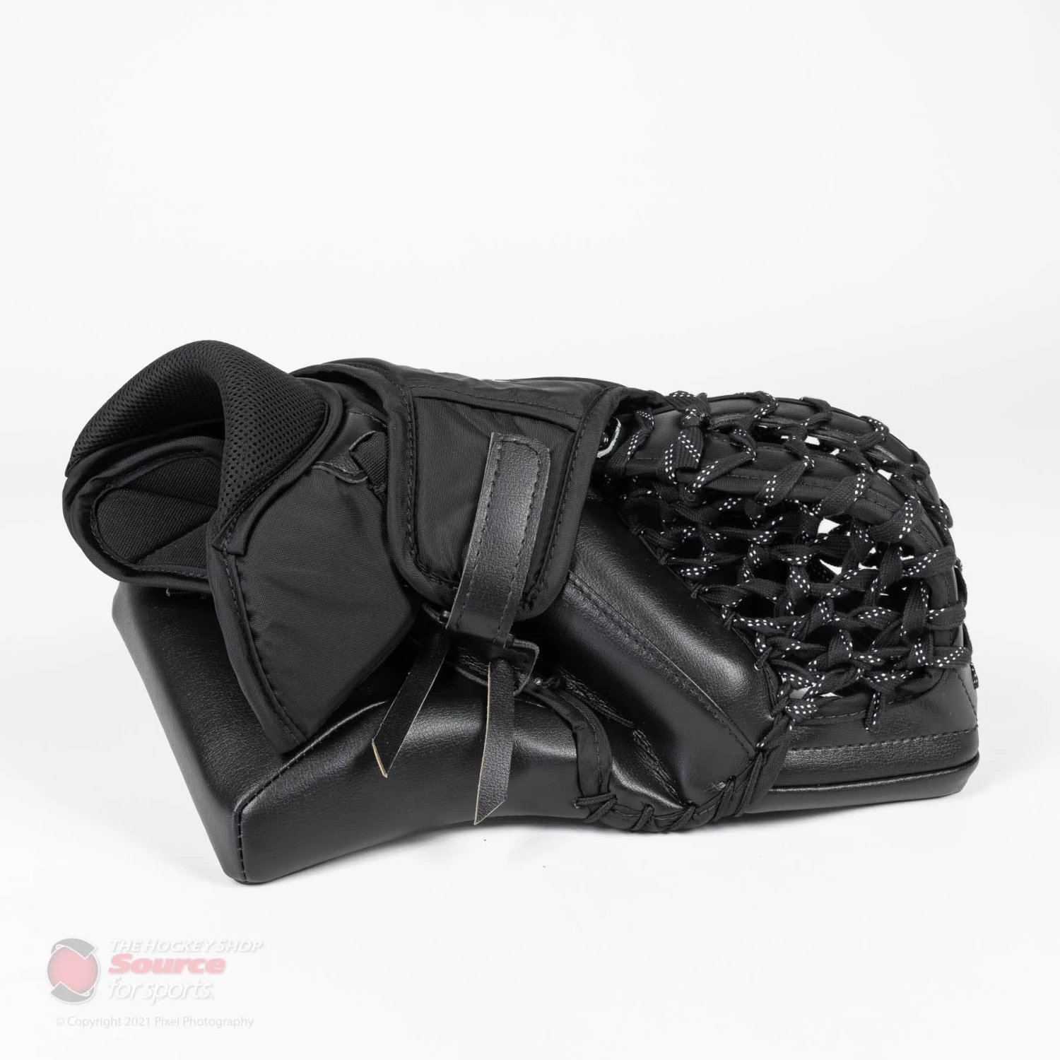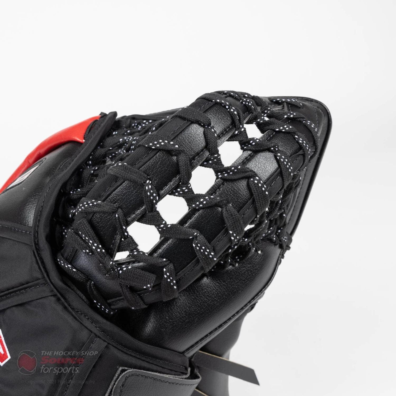 The V9 Pro Carbon XP catcher utilizes a true one-piece cuff reinforced with carbon for increased protection. A bindingless construction is used in order to maximize the blocking surface. A wide, open cuff design allows the V9 XP catcher to sit comfortably in any goalies stance no matter their glove position.