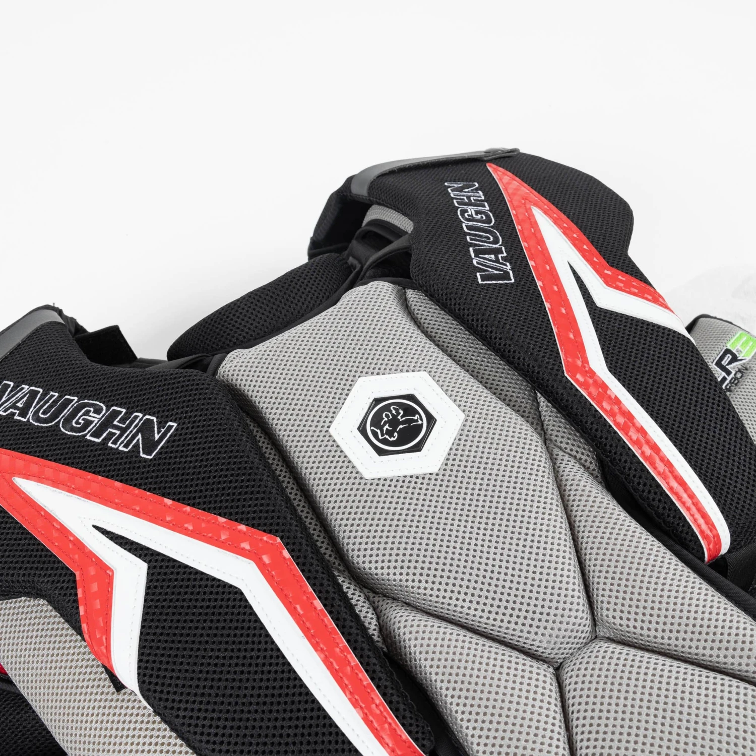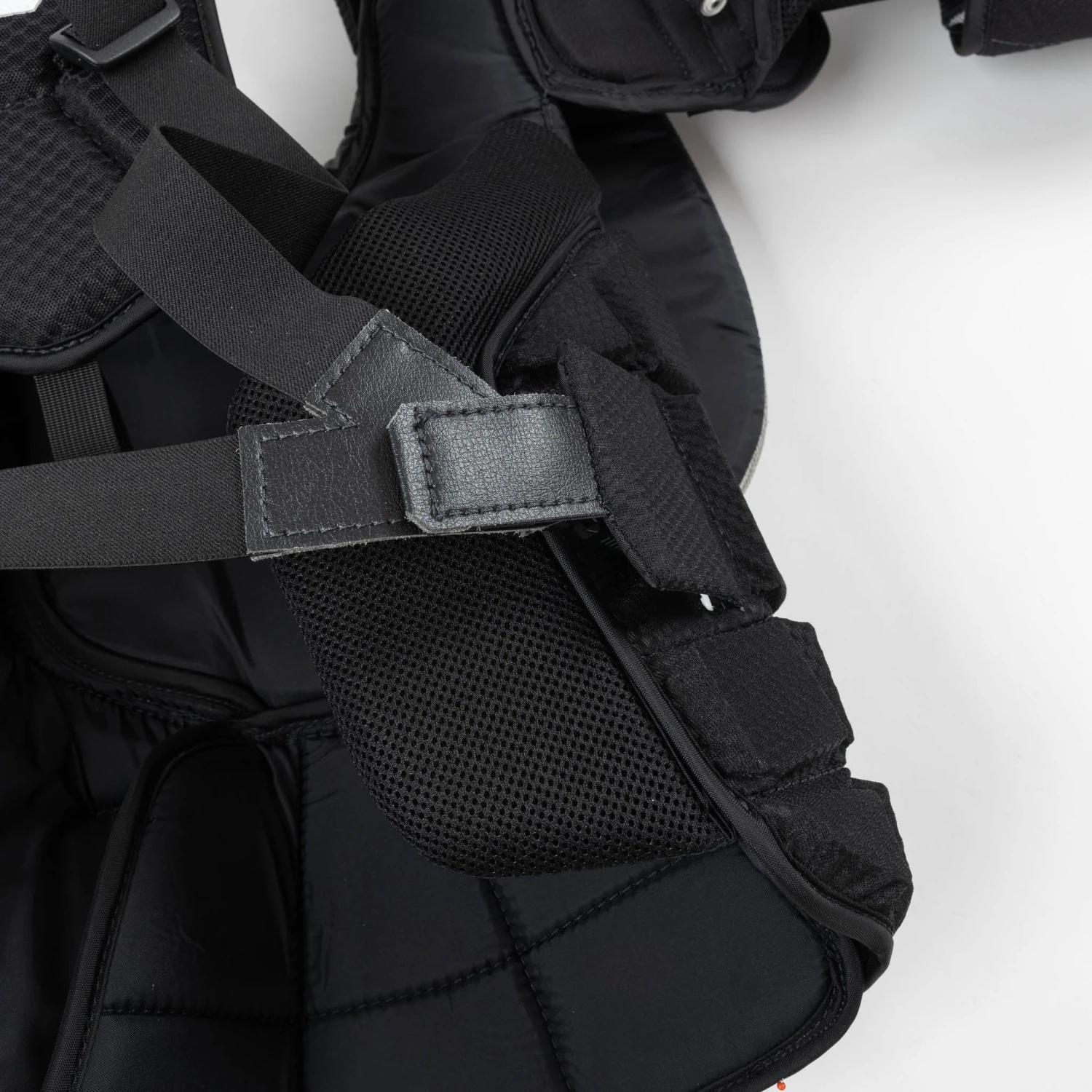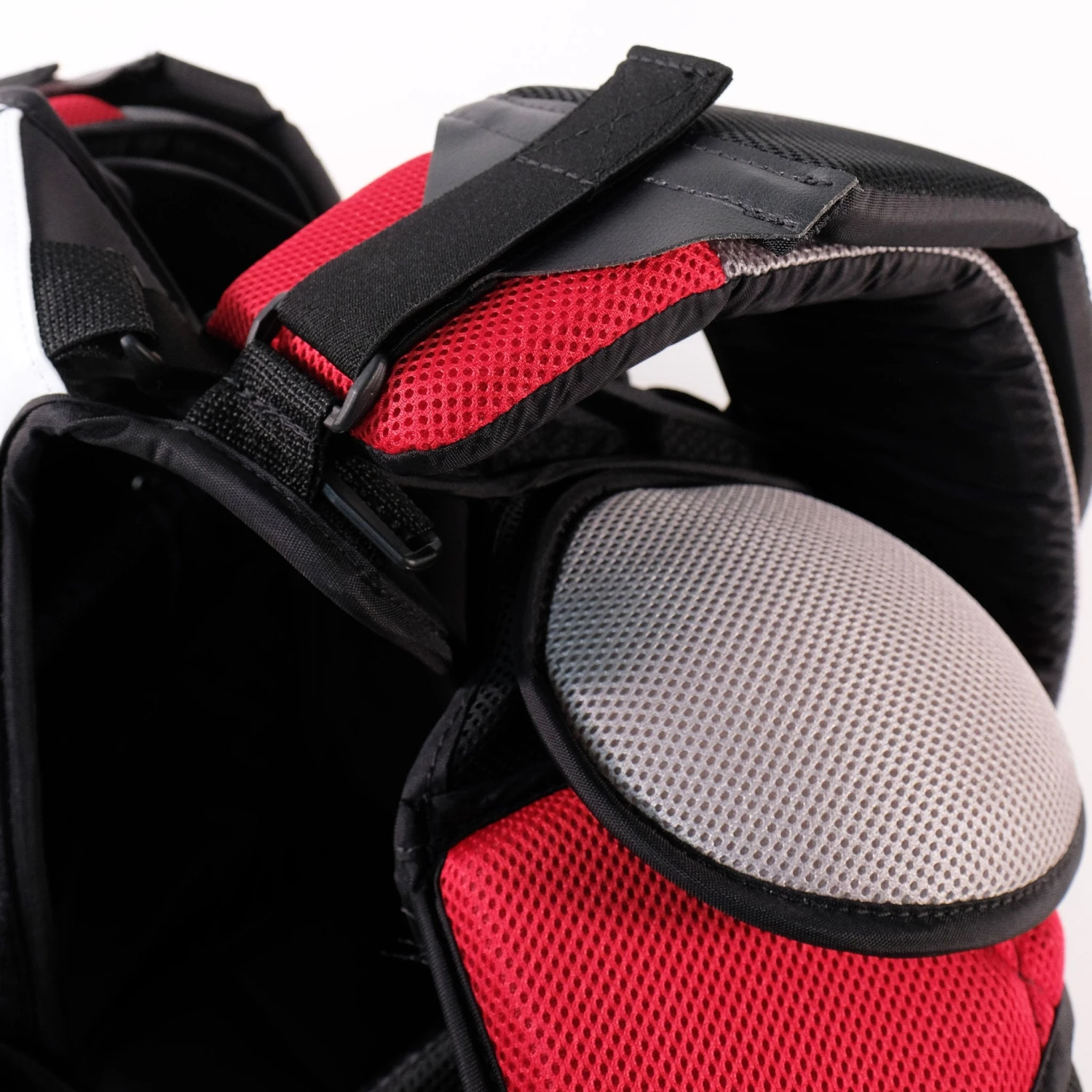 A second optional velcro layer was added under the shoulder floaters; many goalies like to wear this layer during practice and take it off during games for some extra range of motion.