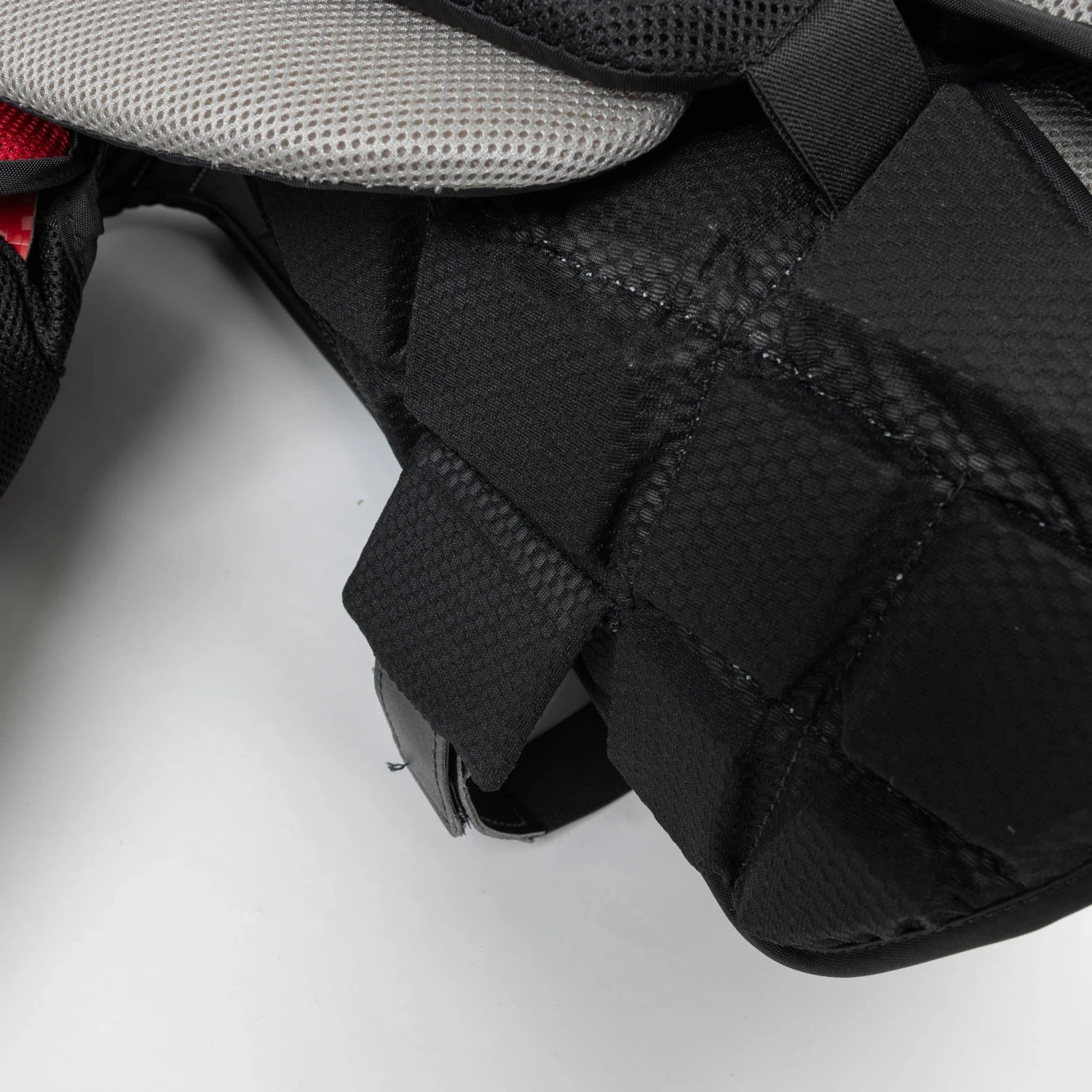 The SLR3 Pro Carbon chest pad exterior is made of nylon mesh for excellent durability and flexibility. The strong nylon weave holds the pads together while adding good ventilation all around.