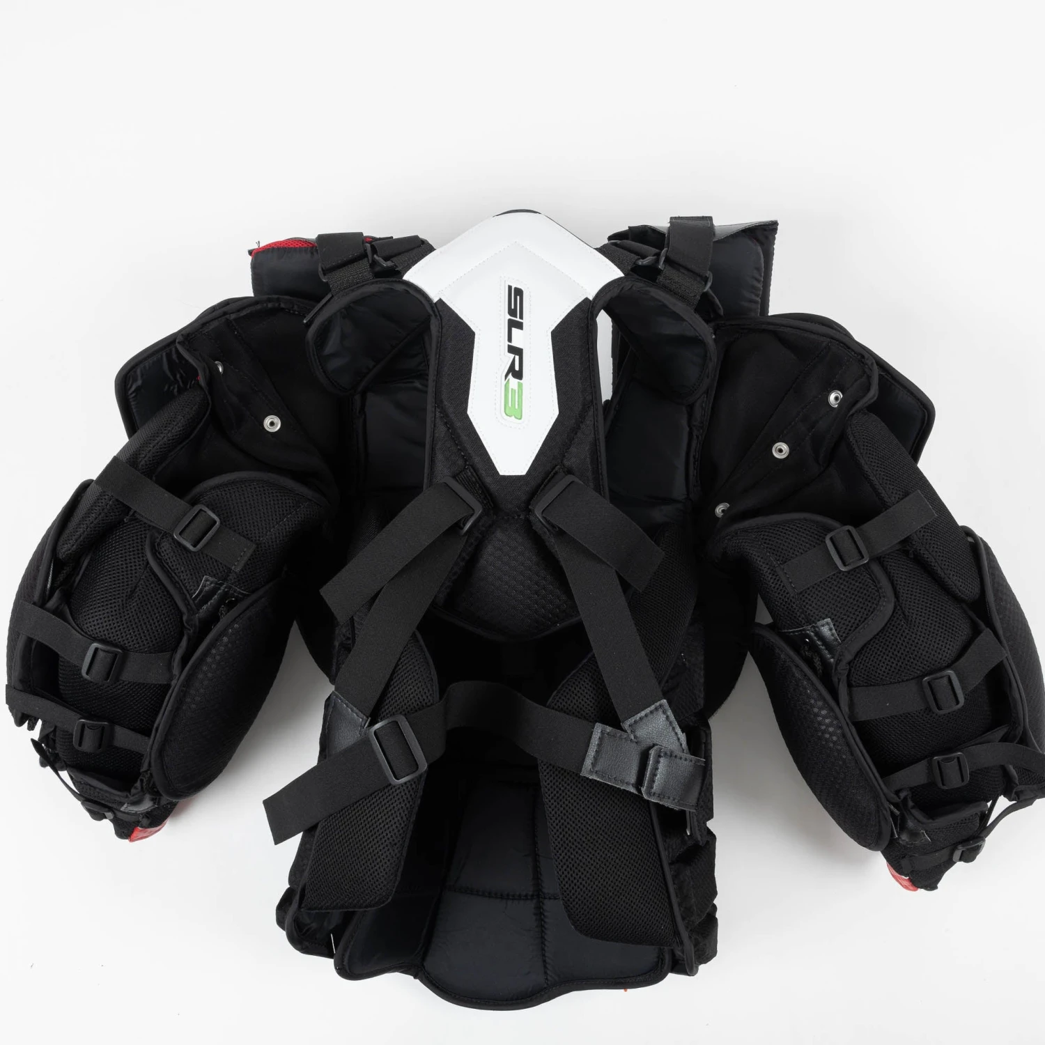 Compared to the SLR2, the SLR3 chest protector is now constructed with higher density foam and carbon reinforcement. These upgrades ensure you are protected and can cover more of the net. Pure Composite foam has been introduced into the SLR3 from the V9. Pure Composite is a foam that works great at keeping you safe from injury and controlling rebounds. It has been added to the sternum to keep that sensitive area well-protected and help you better control where the puck goes.