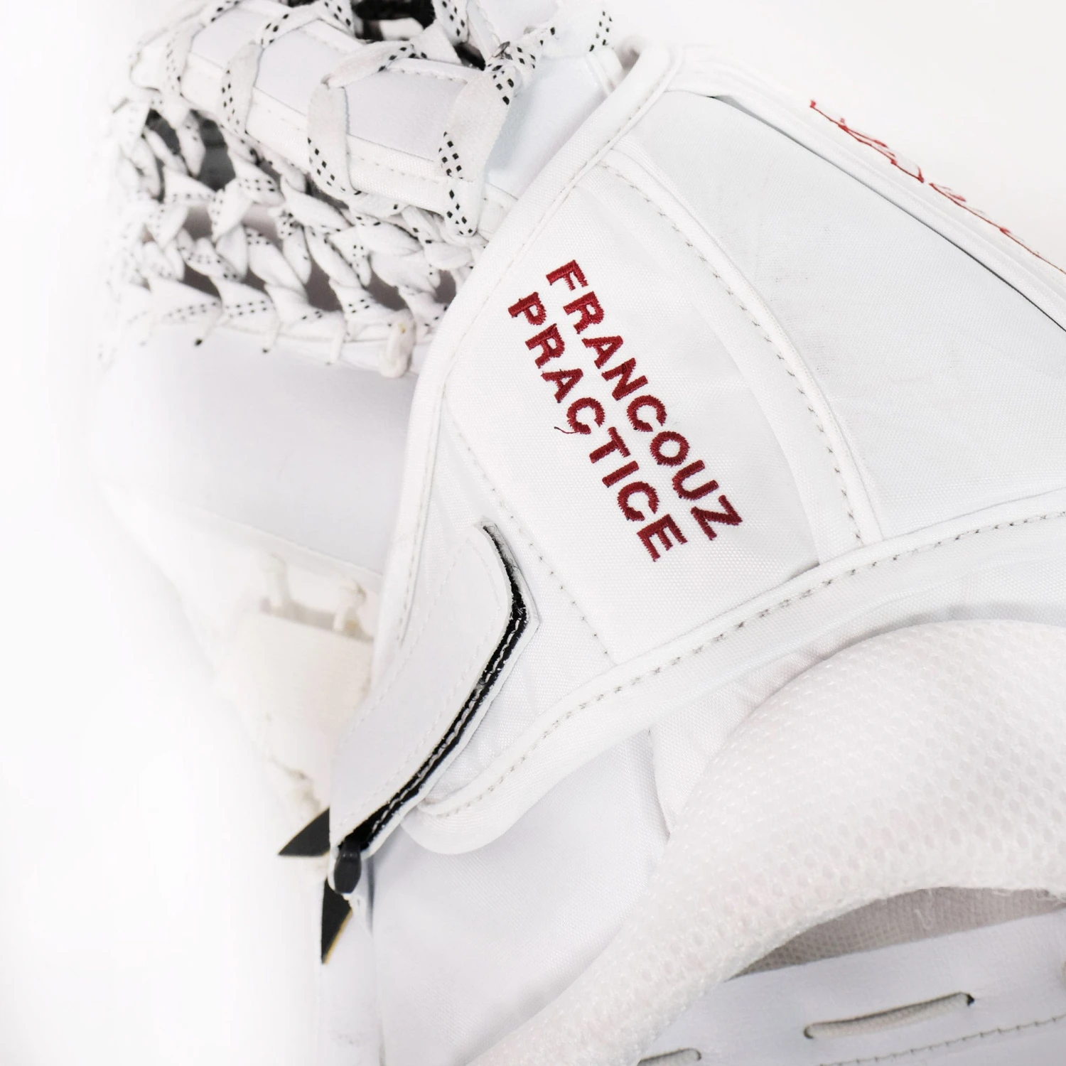 The Francouz Ventus SLR3 Pro Carbon catcher has been built entirely like the stock SLR3 Pro Carbon glove with the exception of the practice palm and custom colour/embroidery. The back of the hand features “Francouz Practice” embroidery and the practice palm means this glove was built with a thicker and stiffer palm. For professional players, this modification makes the glove ideal for practice, but the glove can be used perfectly well in games while offering a bit of extra security against stingers.