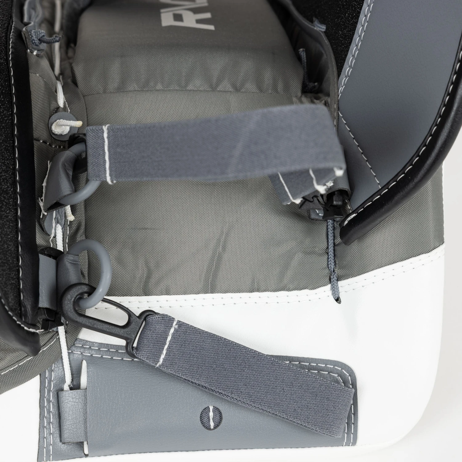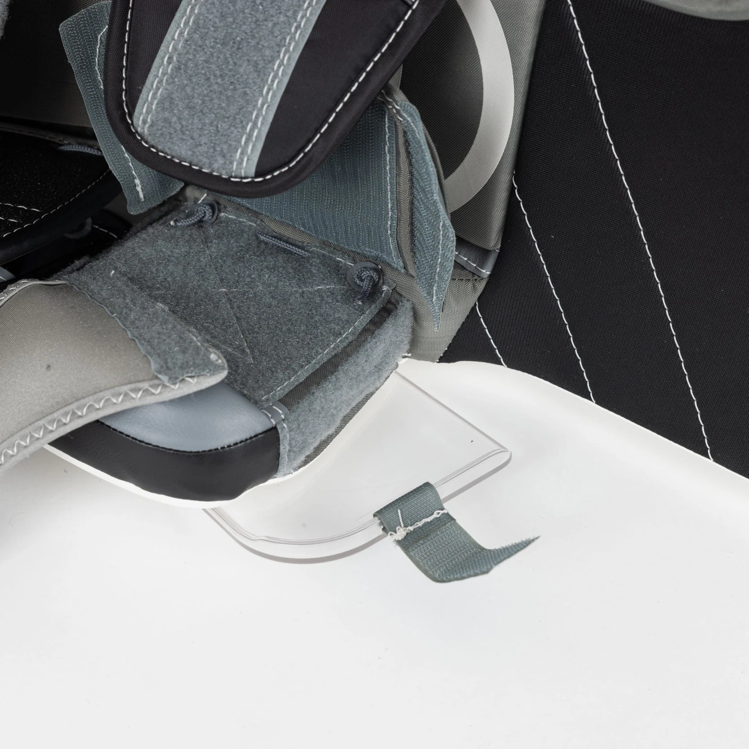 For better control, the pads use a combination of Warrior’s 360TriFit leg channel and a contoured shape. The semi-built-in knee block returns from previous Ritual models, which is stiffer for a more stable knee landing. The knee cradle on the G6 is adjustable.