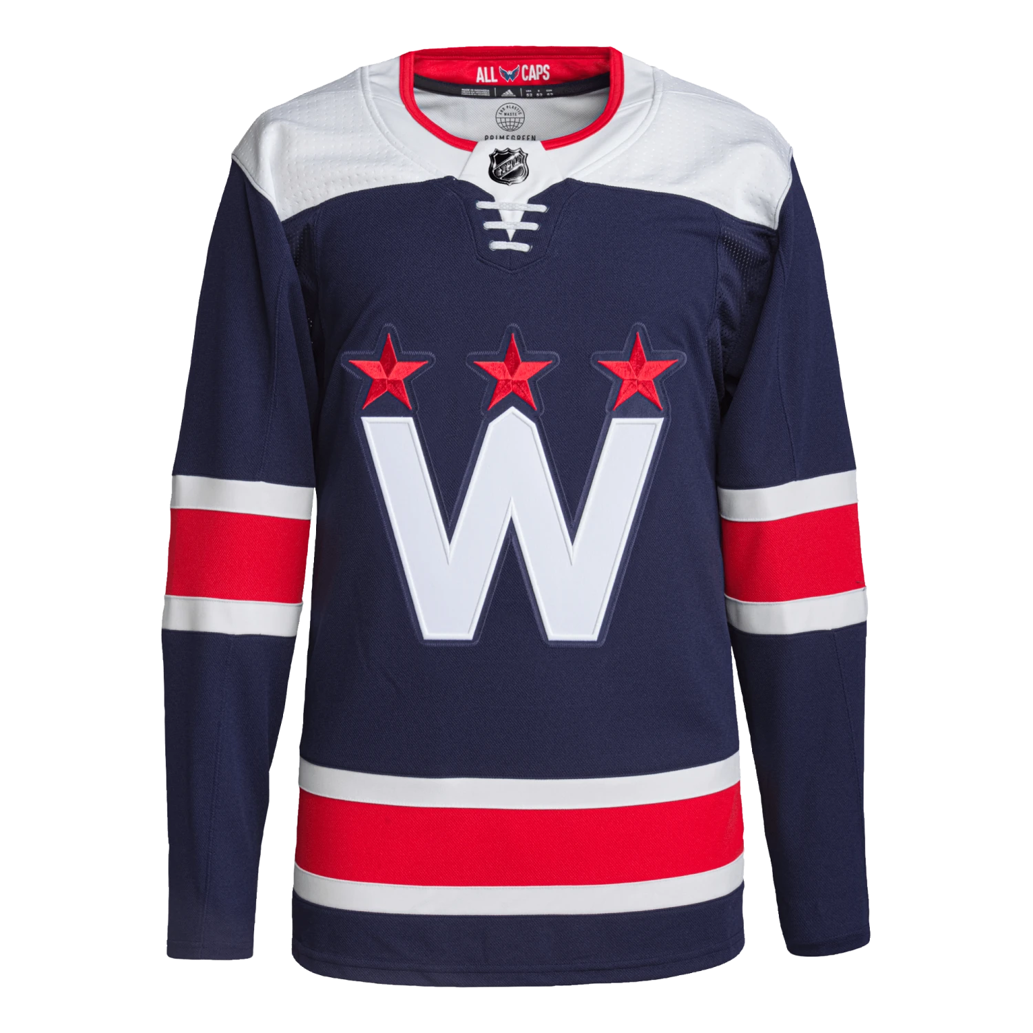 Pull on the colors of the Washington Capitals, and let the puck drop. Featuring an authentic tie-down fight strap and a loose fit, this adidas hockey jersey is the Capitals Alternate jersey. AEROREADY manages moisture to keep you dry and comfortable. This product is made with Primegreen, a series of high-performance recycled materials.