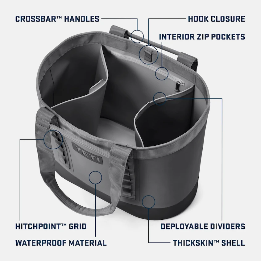 The bigger-than-life Camino® 50 Carryall features deployable dividers and two interior zippered pockets. Made from the same waterproof, ultra-durable, and easy-to-clean material as the Panga® Duffel, this tote bag will keep ski gear dry and helmets and harnesses safely contained. Sized for big hauls and even bigger adventures, the Camino® 50 Carryall can handle just about anything you throw in it.